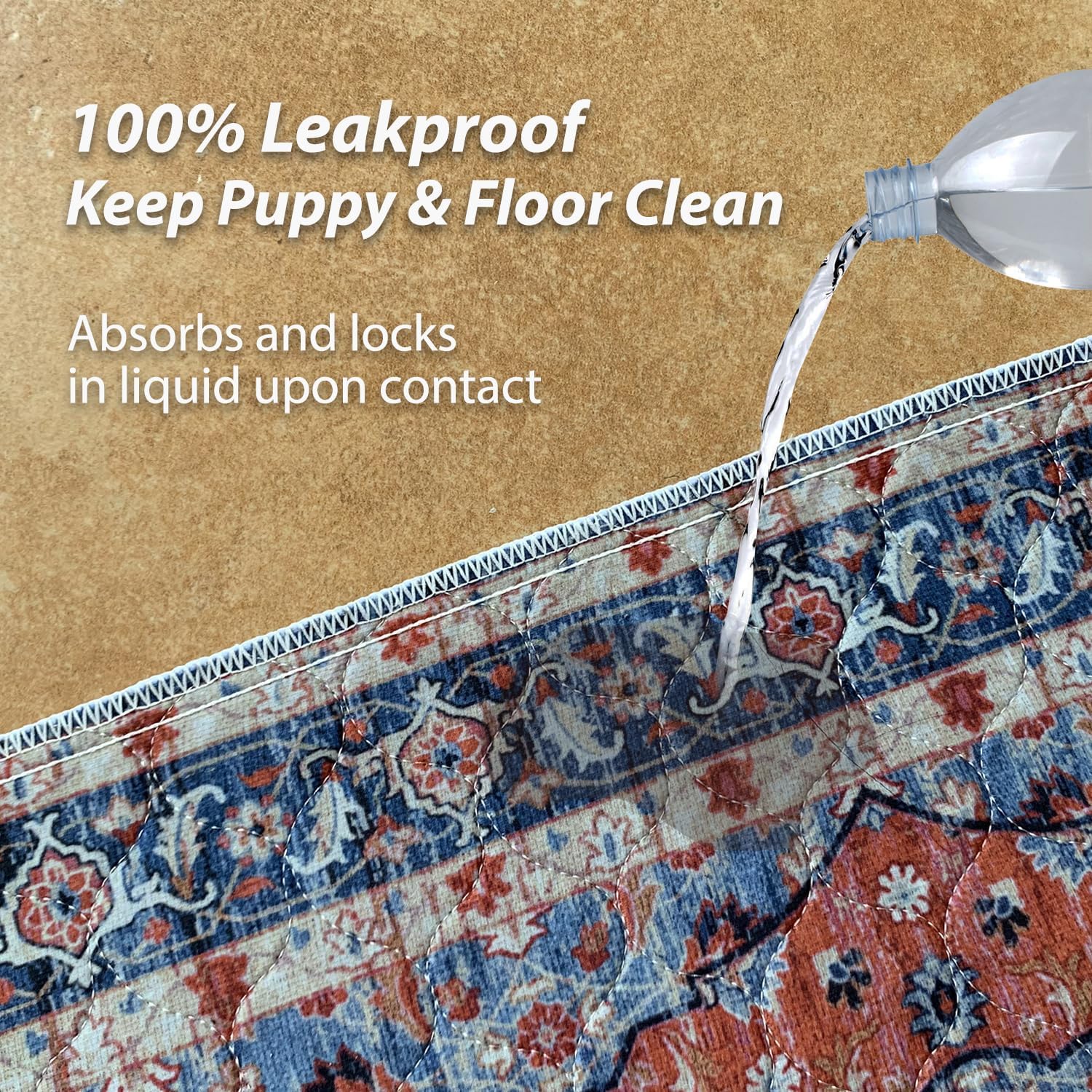 nunubaby Washable Pee Pads for Dogs, Stylish, Non-Slip and Leak-Proof Pee Pads. Reusable Potty Pads for Dogs for Crates and Floors.(Red/Multi, 18" x24")