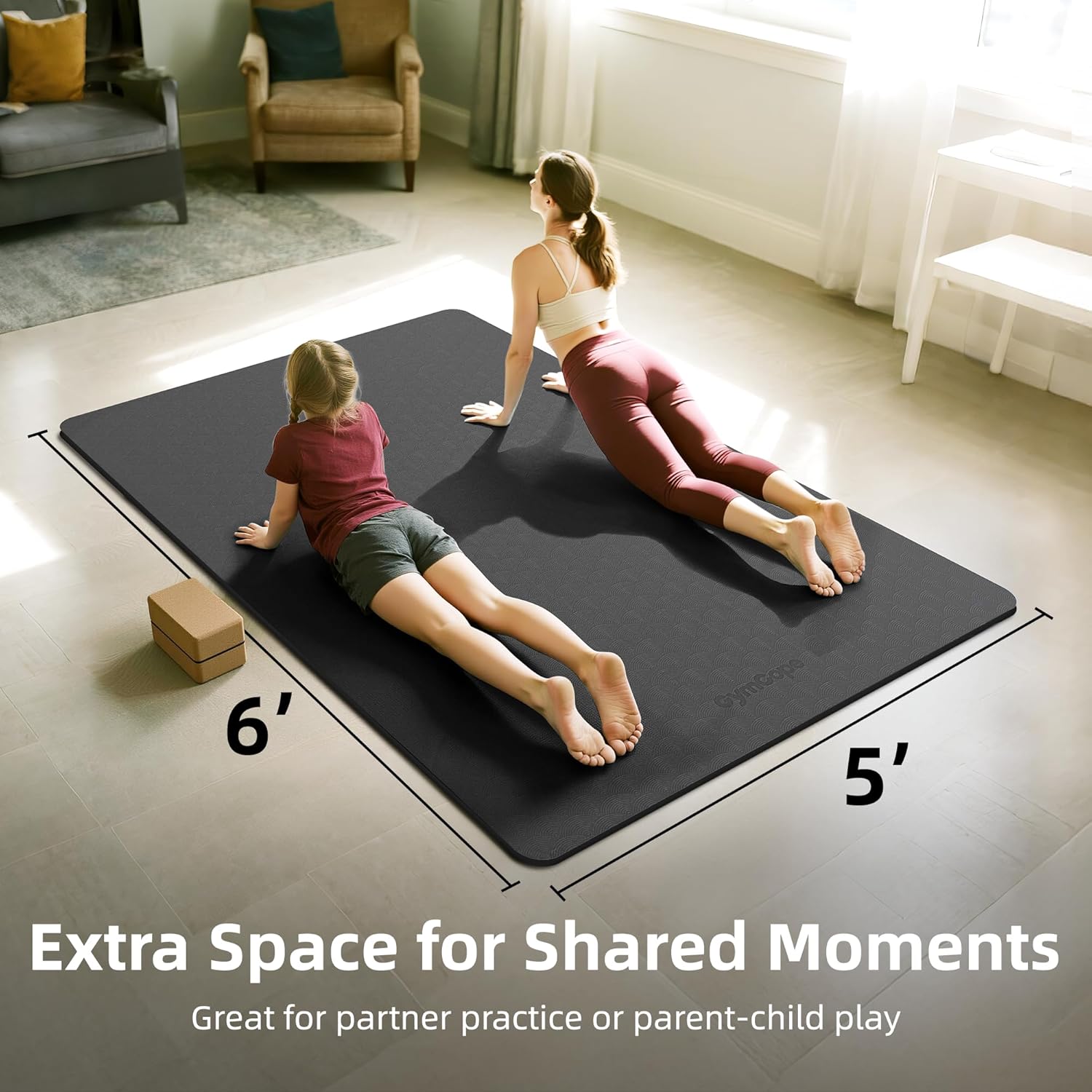Extra Large Yoga Mat - 72"x35", 72"x48", 78"x57" - Wide TPE Exercise Mat for Home, Stretching, Couples & Family Workouts - 6-12mm Thick, Non-Slip & Waterproof - with Carry Bag and Straps