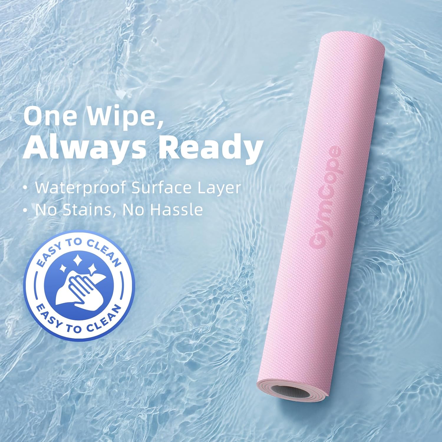 - [Waterproof & Easy to Clean – Wipes in Seconds] Closed-cell TPE resists sweat, moisture, and dirt. Just wipe with a damp cloth — no soaking or scrubbing — for a fresh, clean mat every session.