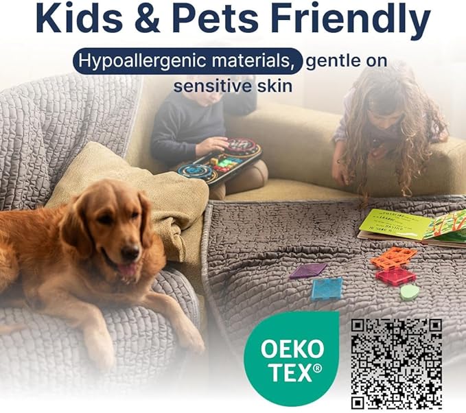 - KID & PET FRIENDLY: Made with hypoallergenic materials, our breathable waterproof blanket is safe even for sensitive skin. Soft and silent, it offers a comfortable, soothing base for rest, play, and sleep.