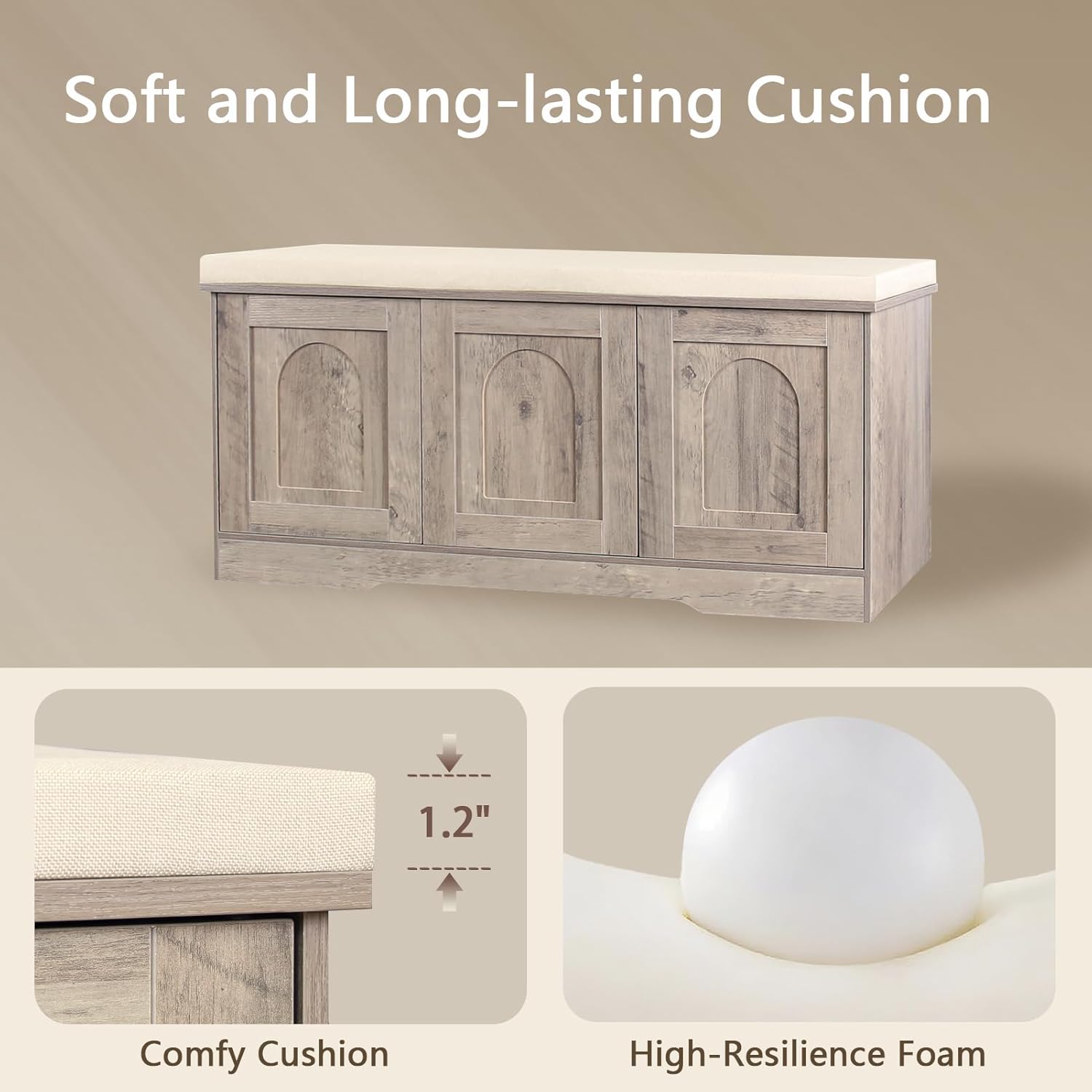- 【Effortless Push-to-open Door】Feature a fully enclosed design with a press-to-open mechanism, keeping shoes clean and tidy while avoiding accidental bumps against door handles during use. Reasonable height and soft cushion let you change shoes by sitting on the bench more comfortable without bending down or squatting