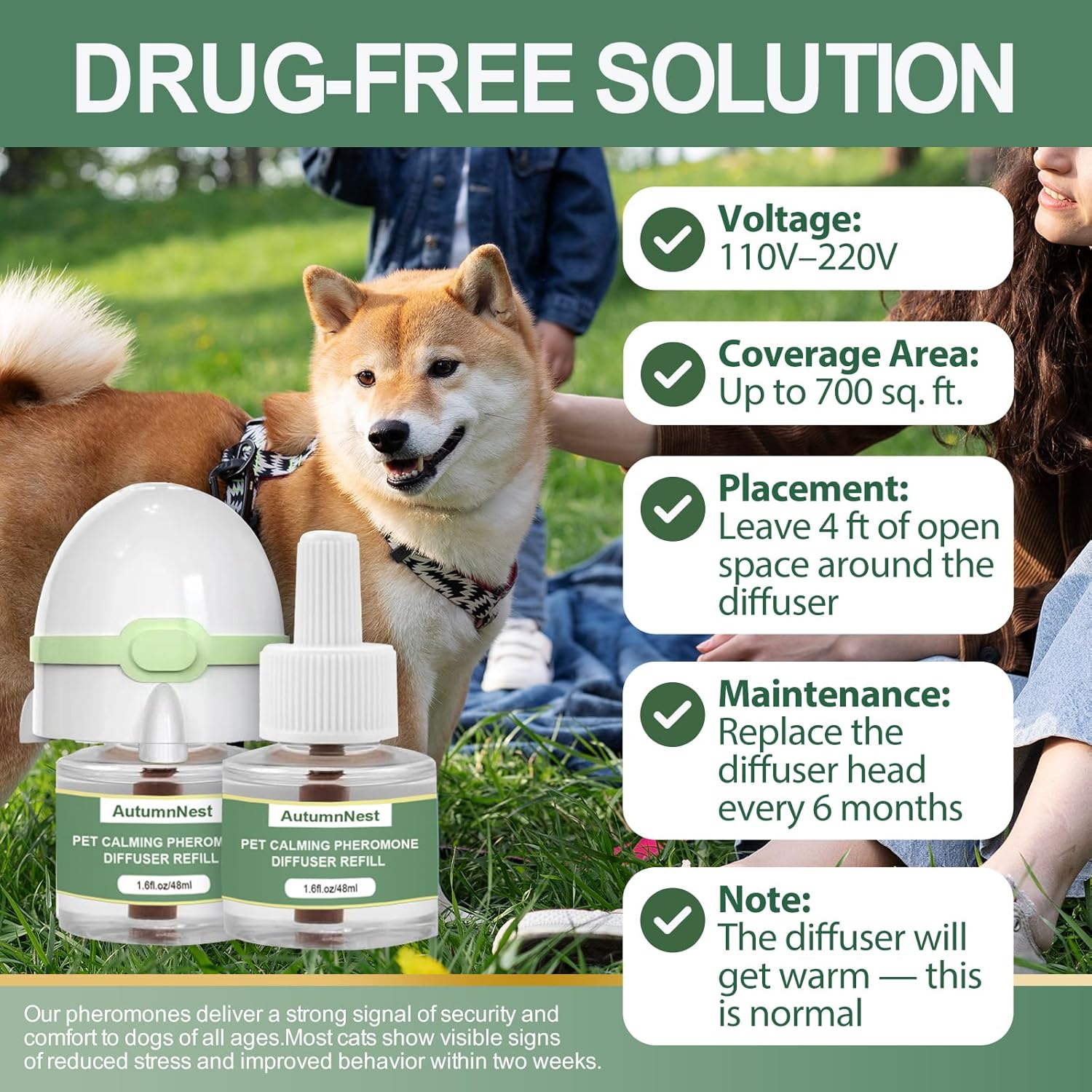 - 【Complete 3 Refill + Plug Kit for Long-Lasting Effect】 Includes one diffuser and three refill bottles (48ml each), giving up to 90 days of continuous behavioral support to help your dog stay calm and comfortable.