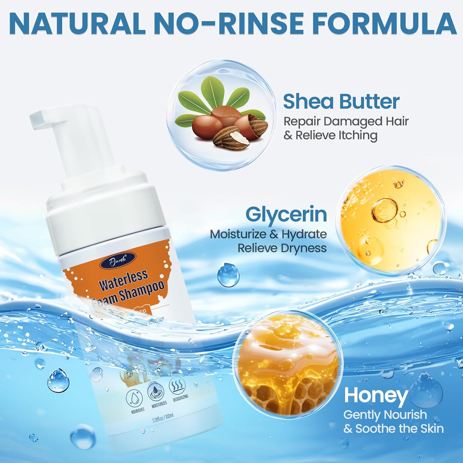 - Gentle & Non-irritating: Our pet waterless shampoo is formulated with natural plant-based ingredients like honey, shea butter, and glycerin. It features a natural honey scent and gentle properties, effectively neutralizing pet odors while relieving dryness and itching. This helps maintain healthy fur and soothes sensitive skin.
