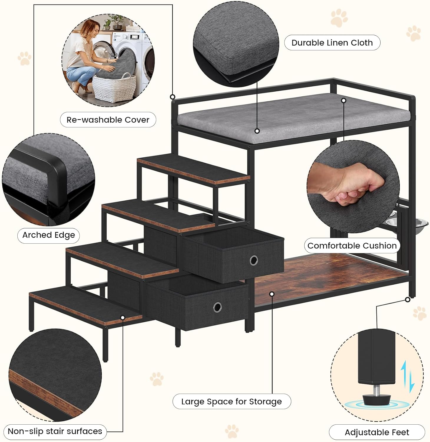 - DURABLE & STURDY CONSTRUCTION: Built with a robust metal frame and high-quality wood grain engineered board for lasting stability. Safely supports pets up to 100 lbs.