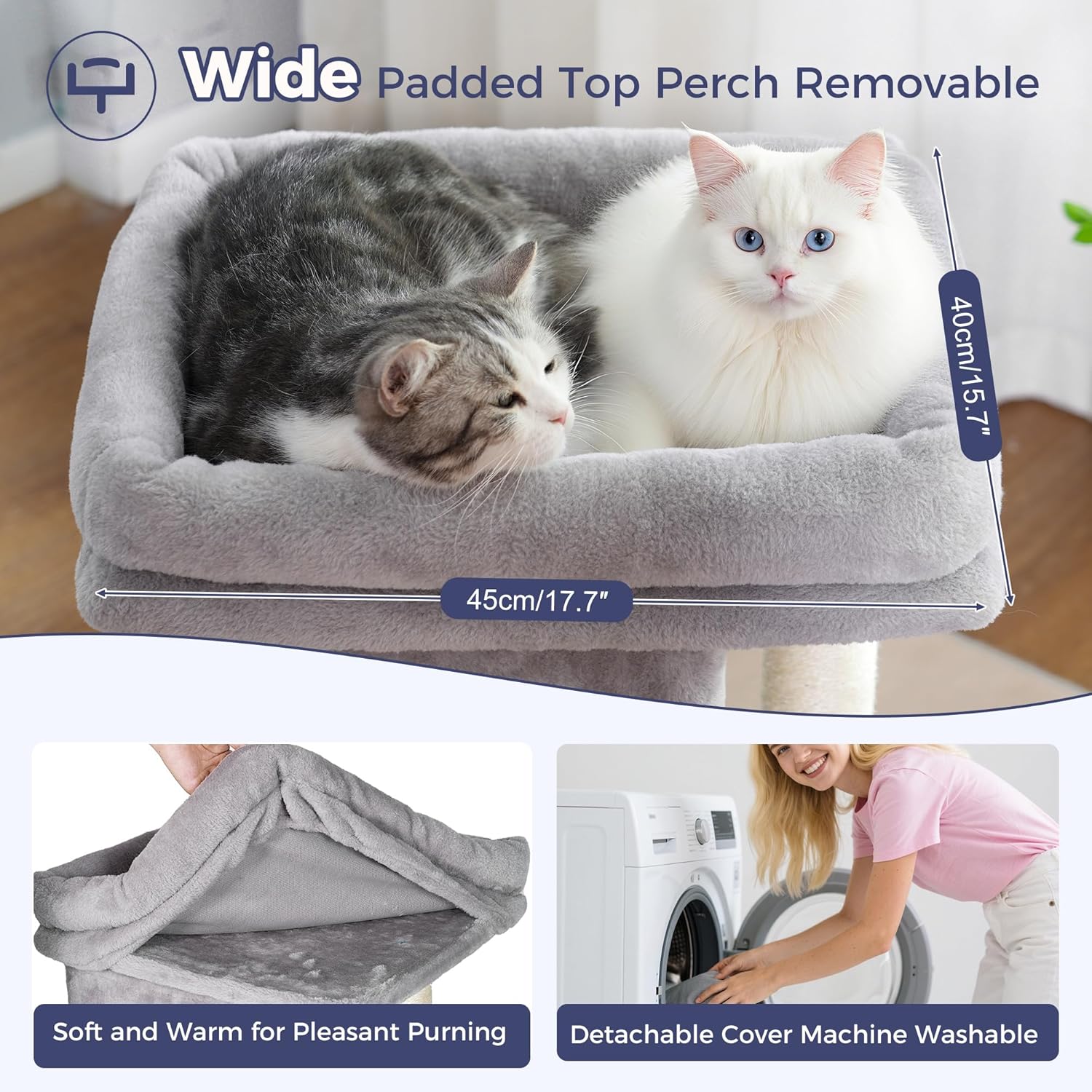 - Fully Scratch Post: This Cat tower standing 28 inches tall is perfect for window perching and boasting with fully sisal posts– tall enough for full-body stretches and keep healthy claw maintenance.Its full sisal-covered design resist shredding and eliminate mess than other half sisal posts. Perfect for tidy home.