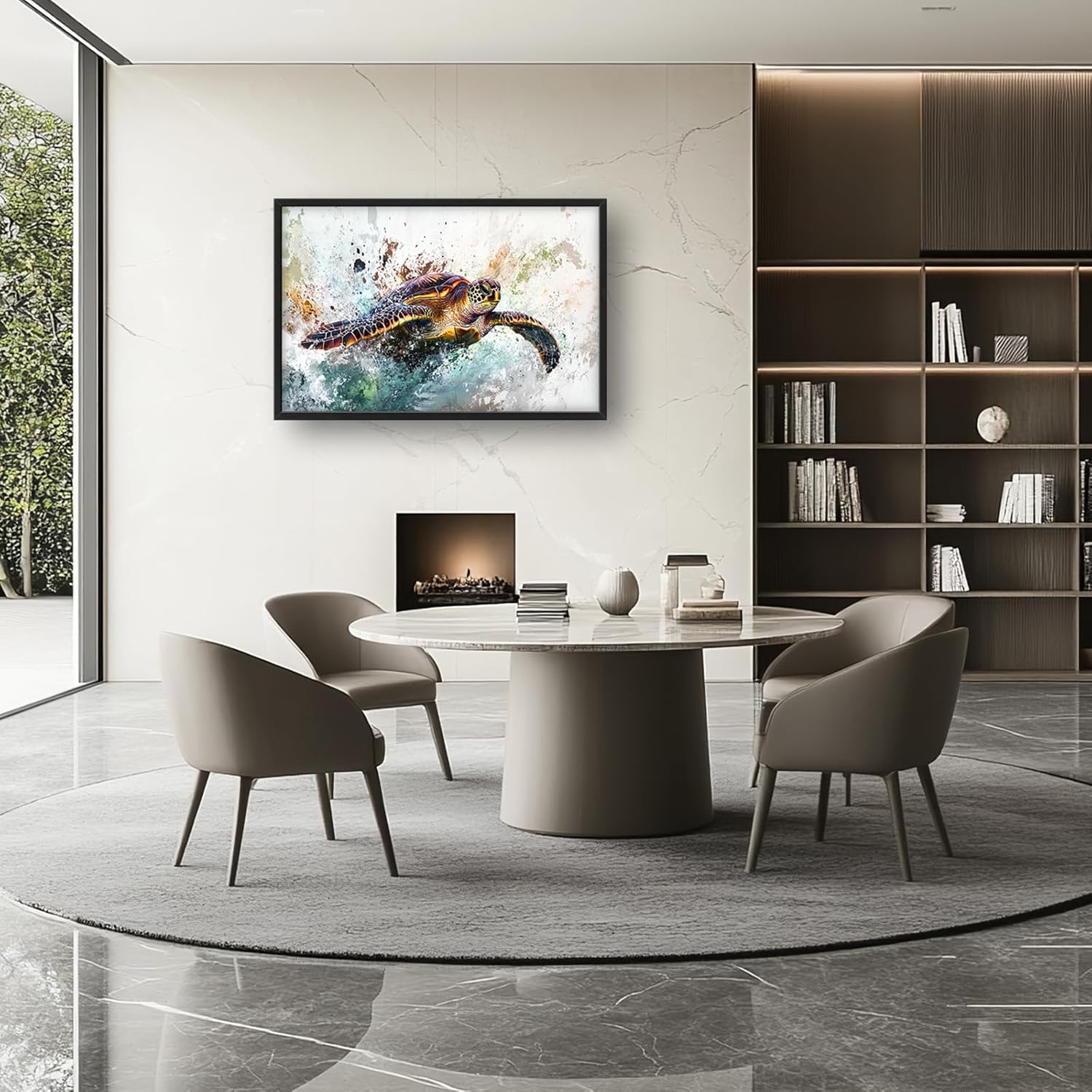 Extra Large Framed Sea Turtle Wall Art,Oversized Abstract Colorful Sea Nautical Wall Decor Pictures for Living Room,Canvas Print Painting Modern Artwork Bedroom Office Bathroom Home Decor 36L x24W