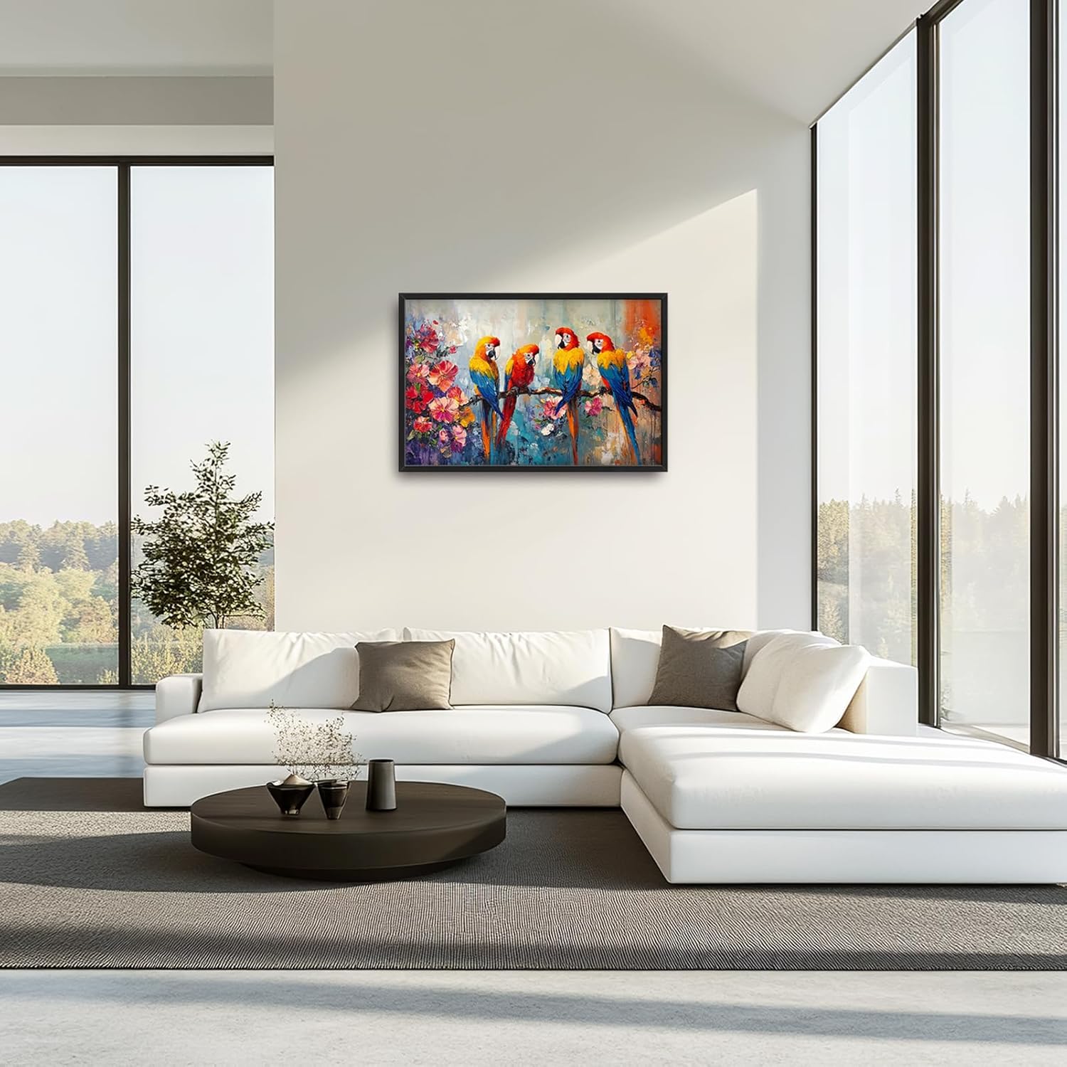 Extra Large Framed Parrot Bird Wall Art,Oversized Abstract Colorful Parrots Flower Wall Decor Pictures for Living Room,Canvas Print Painting Modern Artwork Bedroom Office Bathroom Home Decor 36L x24W