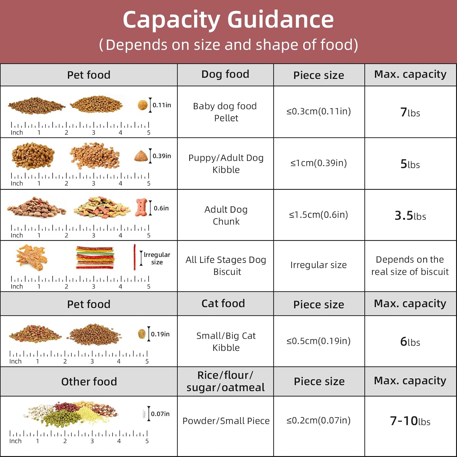 - WHAT YOU GET ? The dog food storage container comes with a 1-pack airtight pet food storage container with a clear measuring cup and an upgraded large spout for easy pouring of pet food at any time. This dog food storage containers can be a gift The perfect gift for any home.
