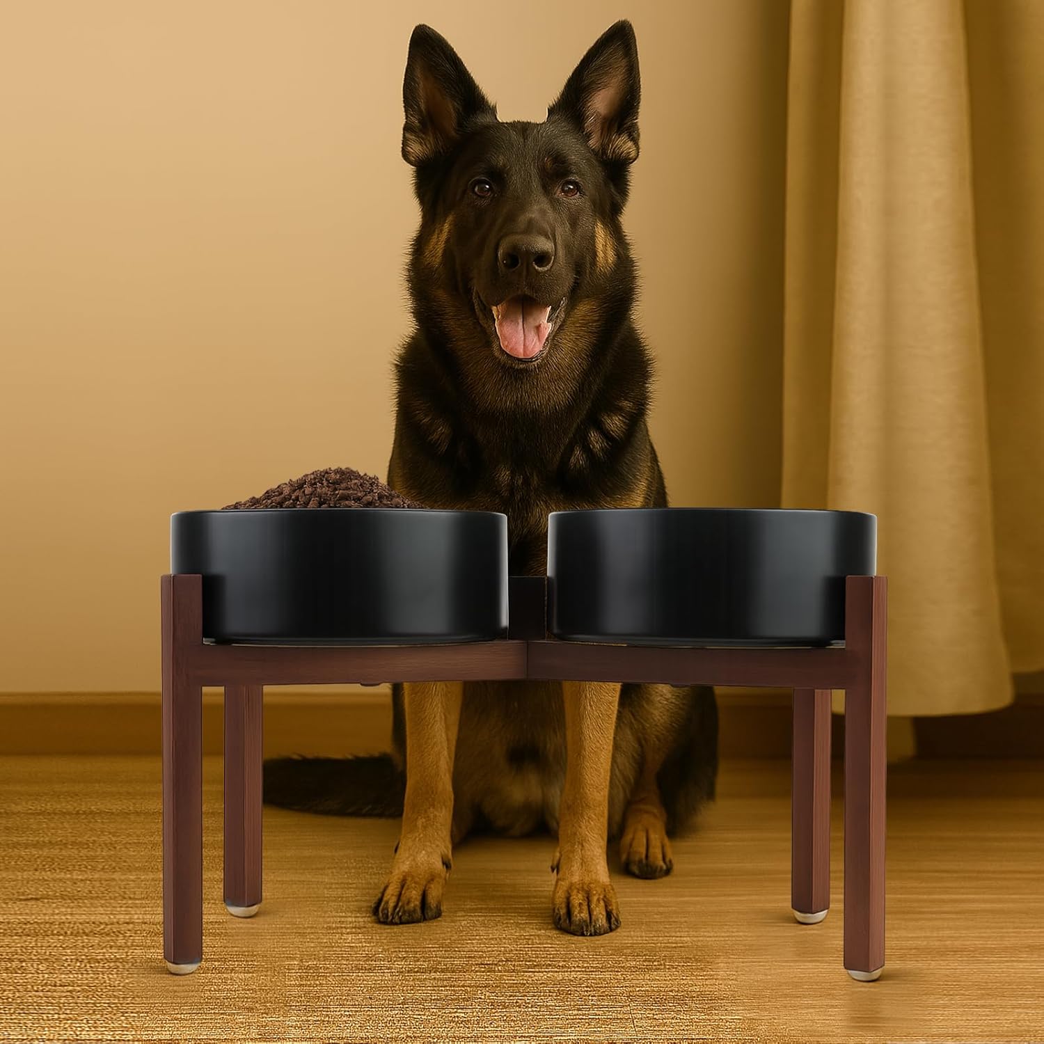 - UPGRADED ACACIA WOOD SHELF: Compared to the usual wood stand, this feeding bowl uses higher quality acacia wood, which not only enhances the overall stability and durability, but also the natural wood grain and warm tone of the wood stand can beautify the home space. The acacia wood stand has better durability and maintains a stable temperament even in humid environments