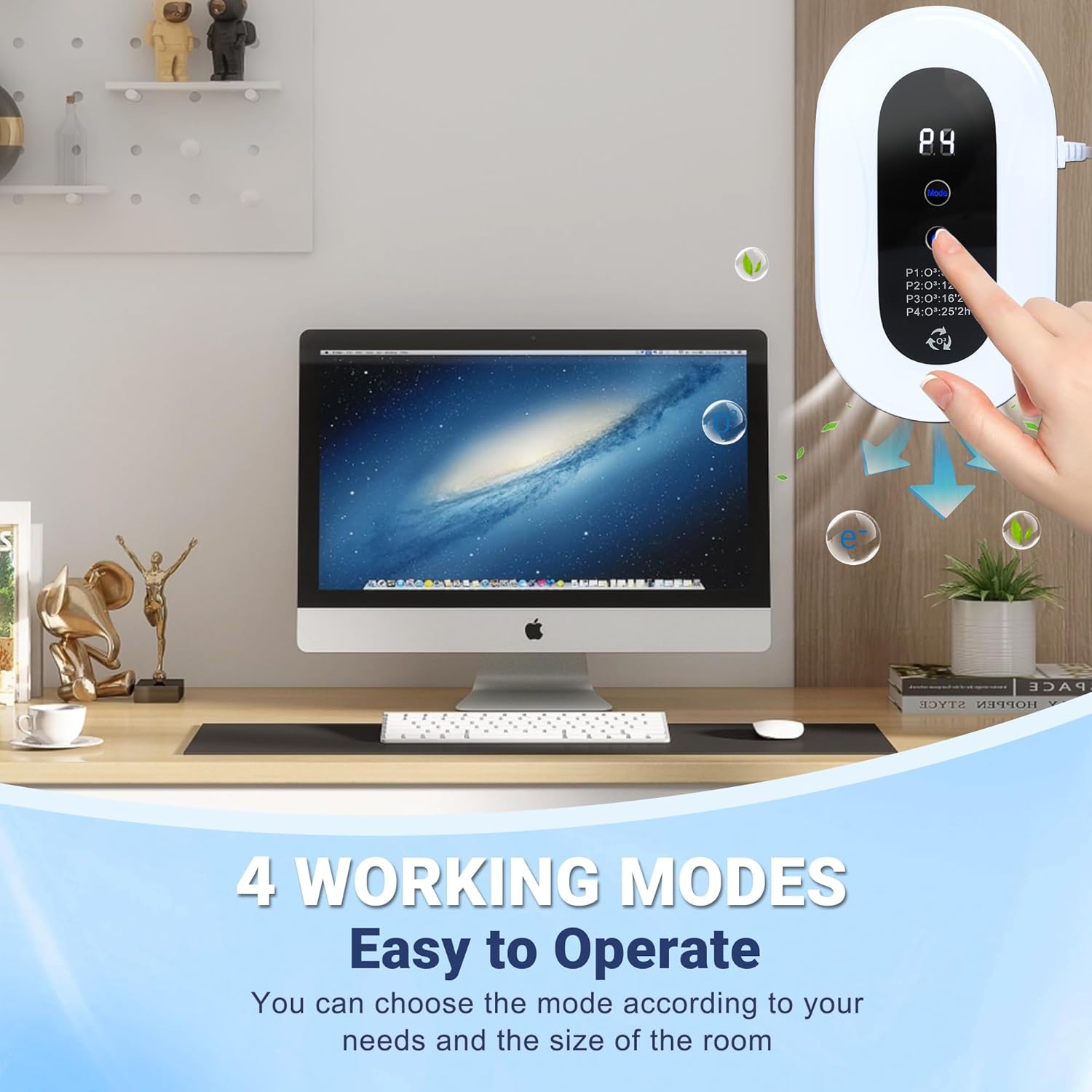 - Widely applicable:This portable ion air purifier has four working modes, and you can freely choose the working mode according to the size of the purification space. It can be used in litter boxes, toilets, bedrooms, shoe cabinets, kitchens, etc.