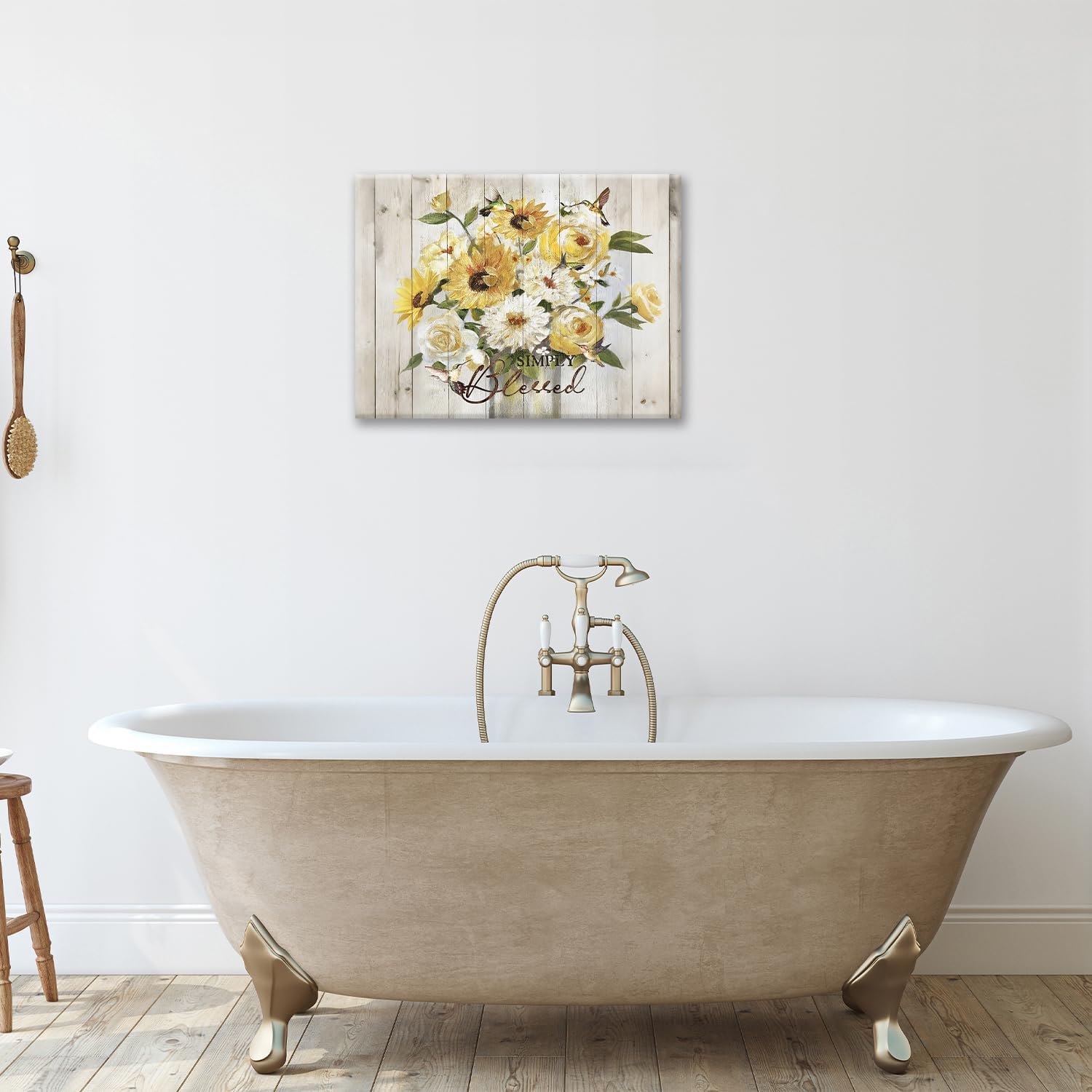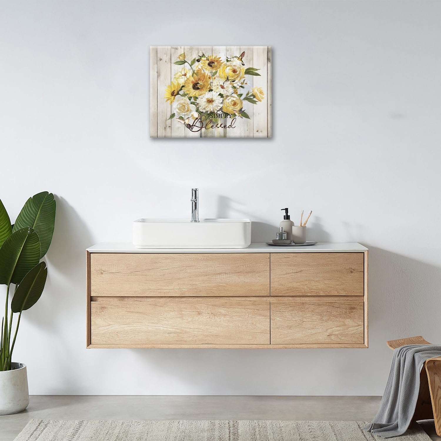 Sunflower Bathroom Pictures Wall Art, Simple Blessed Floral Bathroom Wall Decor, Flower Framed Painting Canvas Artwork for Bedroom Living Room Decorations 20"L x 16"W