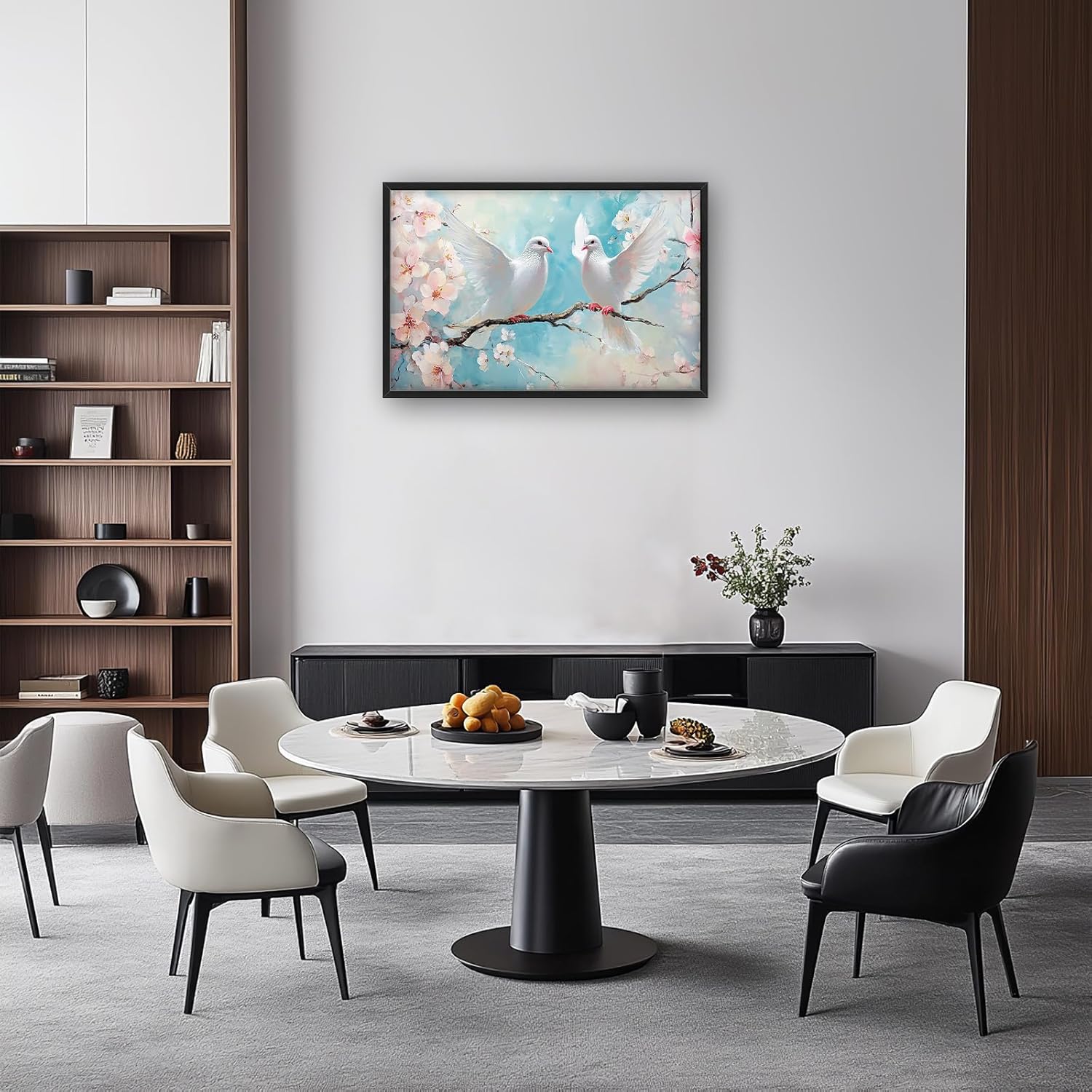 Large White Dove Flower Wall Art for Living Room, Framed Oversized Pigeon Cherry Blossom Wall Decor Nature Canvas Painting Modern Artwork for Living Room Bathroom Bedroom Office Dining Room 36"x24"