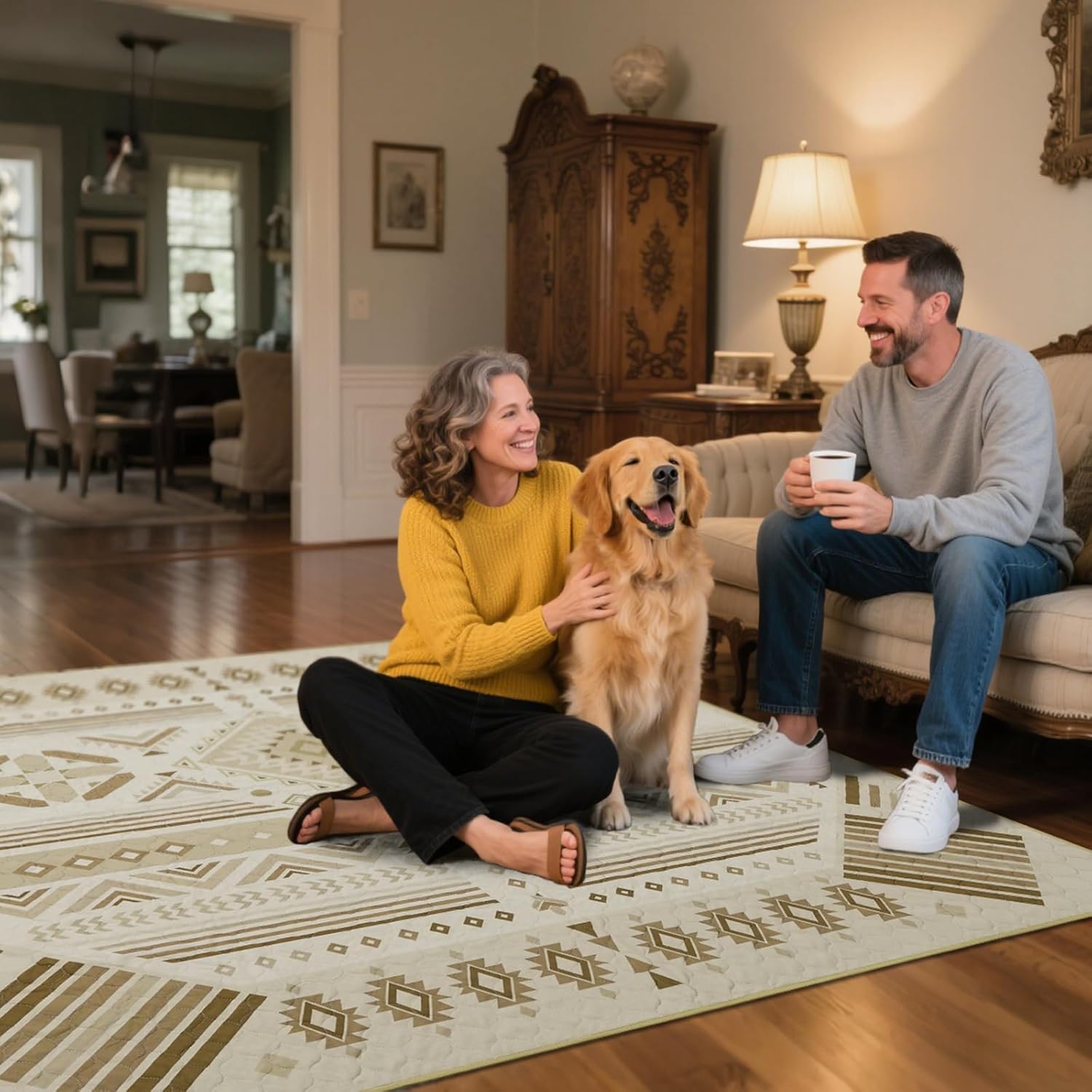 FXW Washable Pee Pads for Dogs, Puppy Pads with Super Absorbent, Specifically Designed for Potty Training, 35" Square, Khaki Geometric, 2 Packs