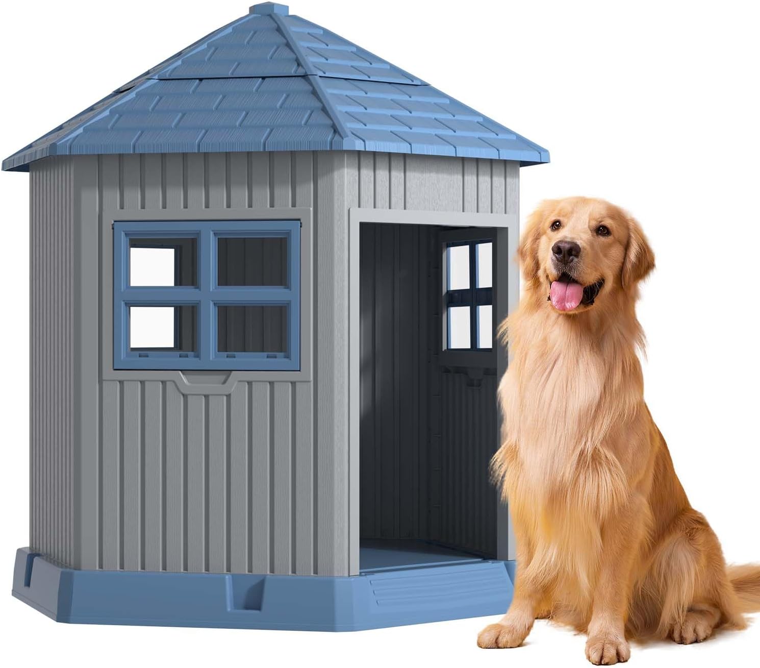 - SUITABLE FOR DOGS OF DIFFERENT SIZES: The luxurious construction of this dog house provides your pets with a comfortable and superior space to move around and rest inside. The oversized size of the outdoor weatherproof large dog house is 34.8*30.51*36.89inch. suitable for small, medium and large dogs.