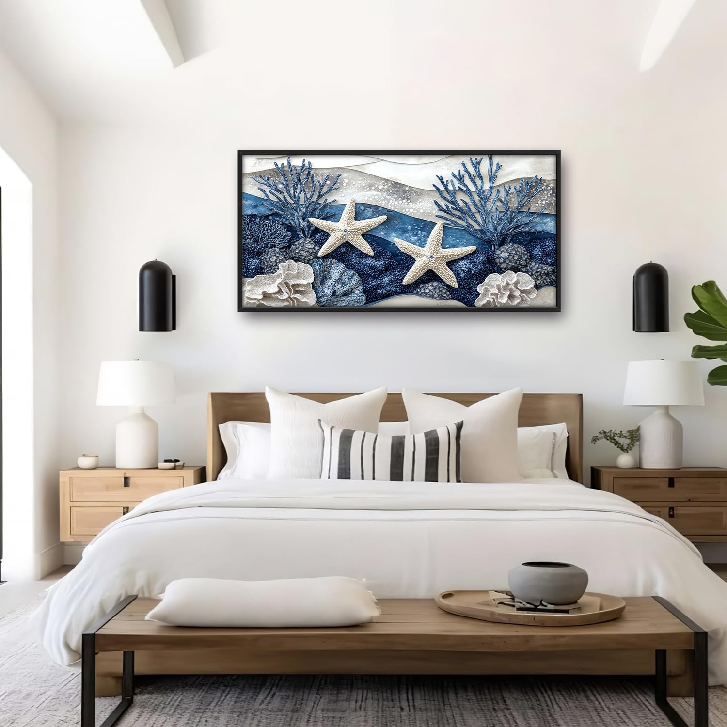 Large Starfish Nautical Wall Art for Living Room, Ocean Canvas Oversized Wall Decor, Sea Animal Modern Framed Pictures Painting Print Artwork for Bedroom Office 60"L x 30"W