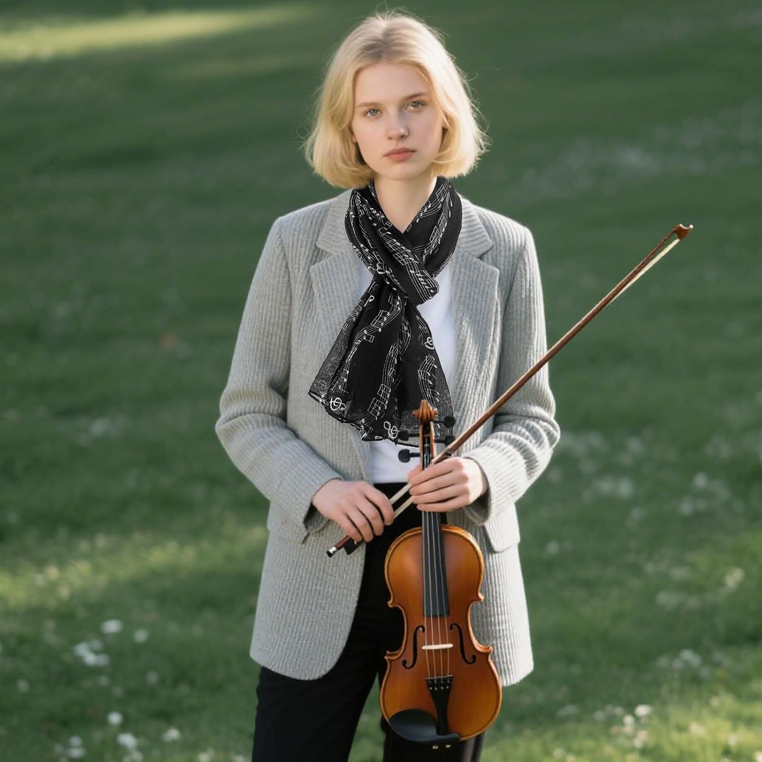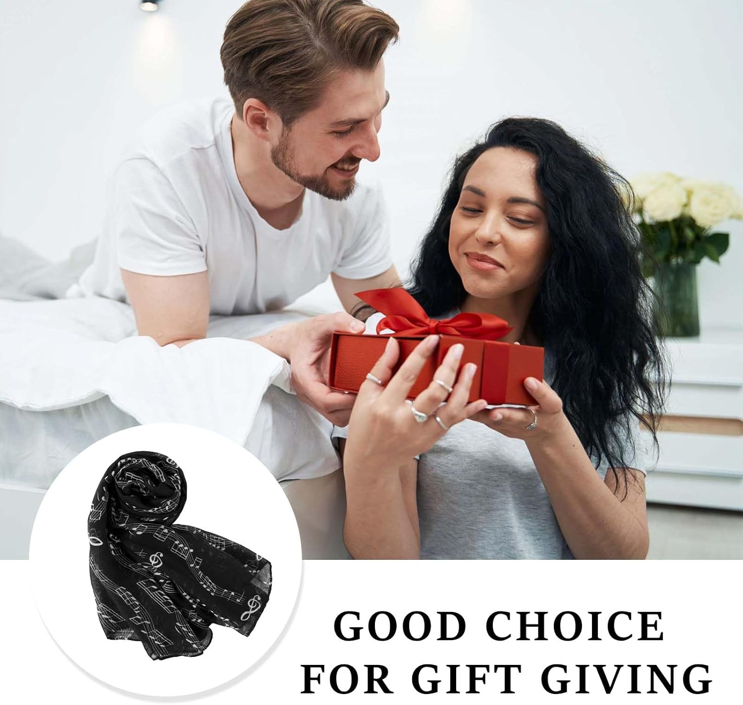 - Occasion:This scarf with a staff pattern is perfect as an addition to your costume.You can use it as a shawl to attend an concert, it would be gorgeous if you pair it with a nice dress.The colors are either matching or reverse, reflecting your unique charming