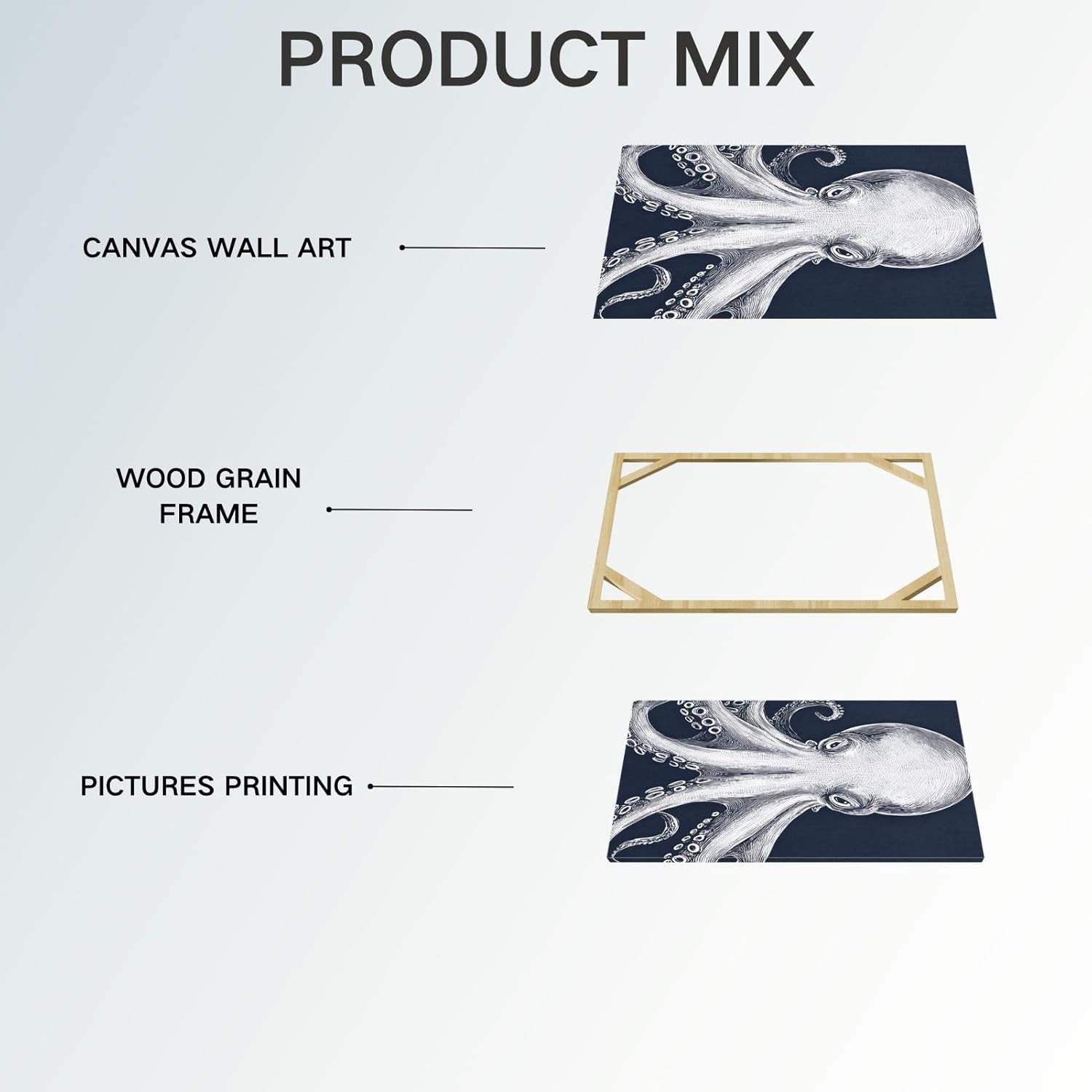 - The High-Quality Canvas Painting:The high-quality canvas fits closely with the wooden frame, Highlight the agility of the octopus canvas painting give you a special mood