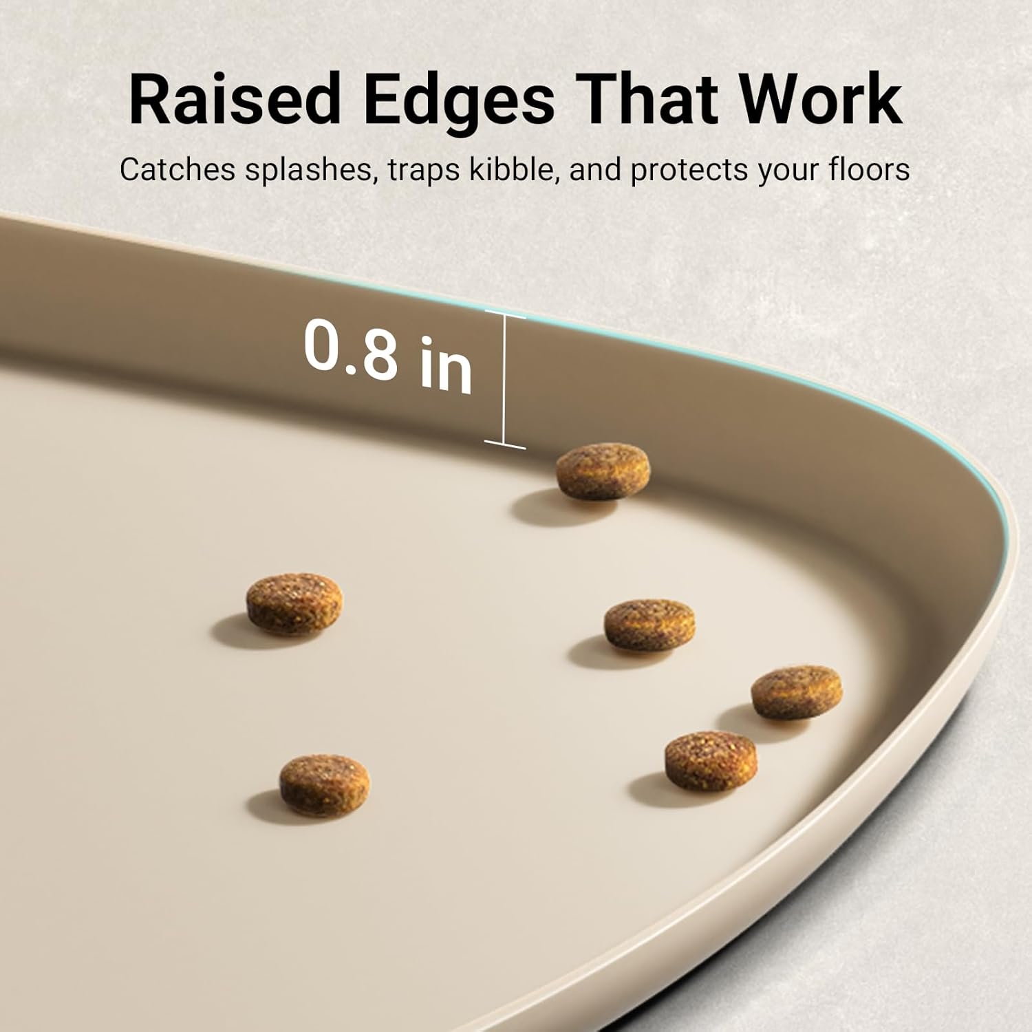 - Stop Messes, Start Happy Mealtimes: Designed with a 0.8inch high rim around all sides, the pet food mat keeps spills, water splashes, and food crumbs securely contained. The dog water mat keeps floors dry and giving messy eaters freedom to enjoy food