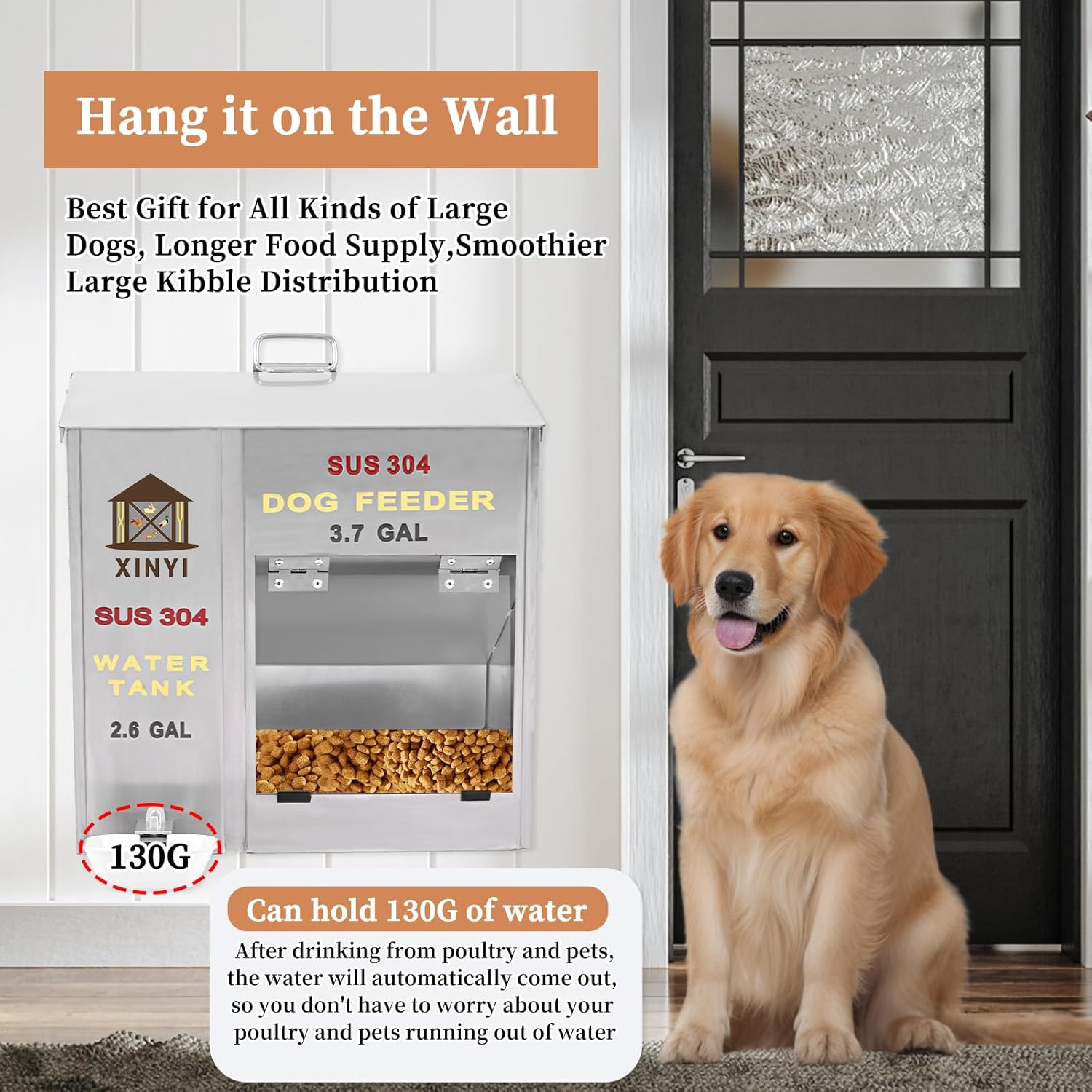 XINYI Automatic Dog Feeder and Waterer 2-in-1,SU304 Stainless Steels 2.6 Gallon Water Tank with 1 Aluminum Alloy Water Cup, 3.7 Gallon Dog Food Dispenser,Automatic Feeder for Pets, Breed, Cat