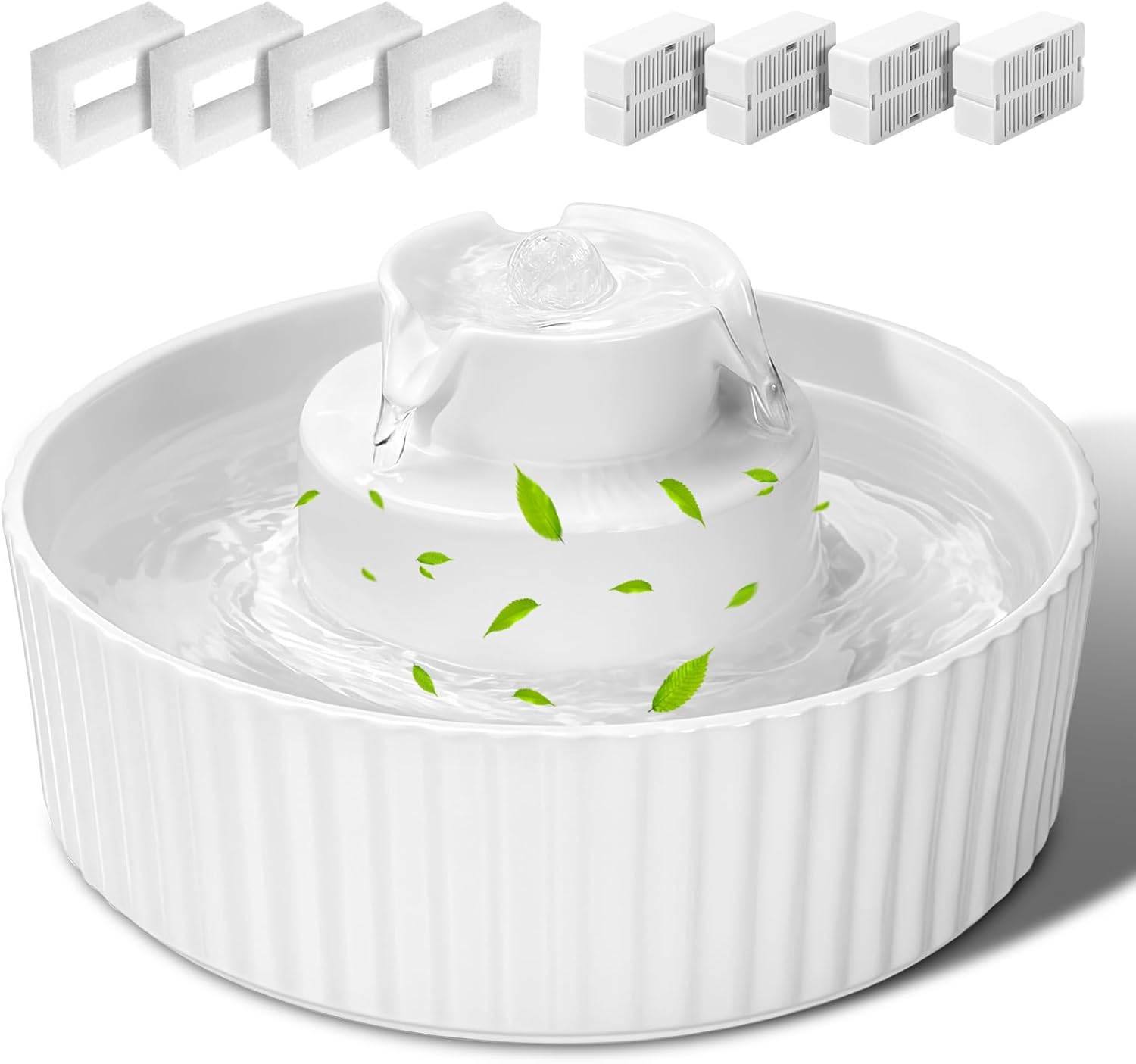 - đ˝ăMulti-Filtration, Water Purificationă: Equipped with activated carbon filter and pre-sponge filter, which can remove sediment, debris and pet hair, this ceramic pet water dispenser can provide a constant supply of flowing purified water. Note: It is healthier to change the filter every 4 weeks!