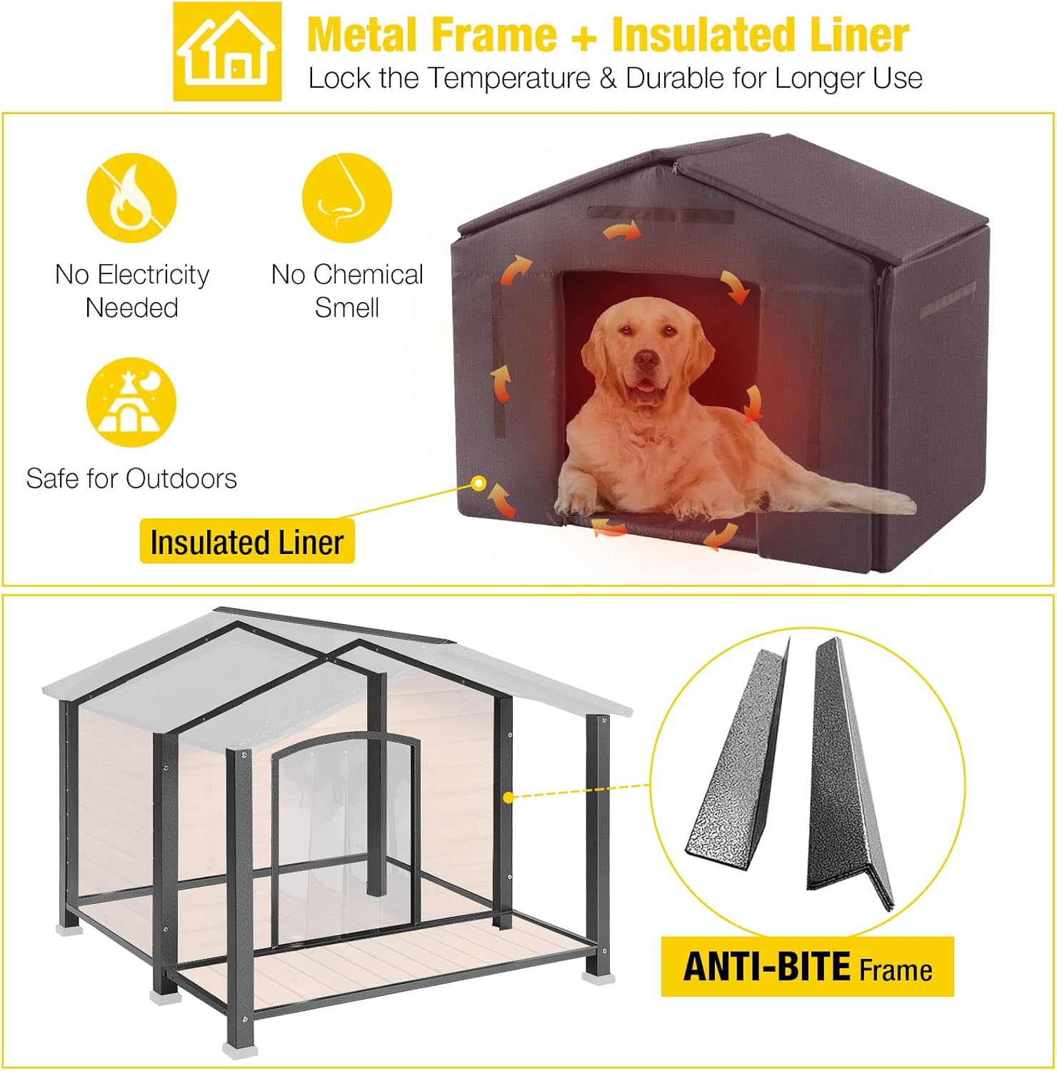 Aivituvin Outdoor Dog House with Chewproof Strong Metal Frame Insulated Outside Dog Kennel Weatherproof for Medium to Large Dogs, (41.5" L x 41.4" D x 34.1" H)