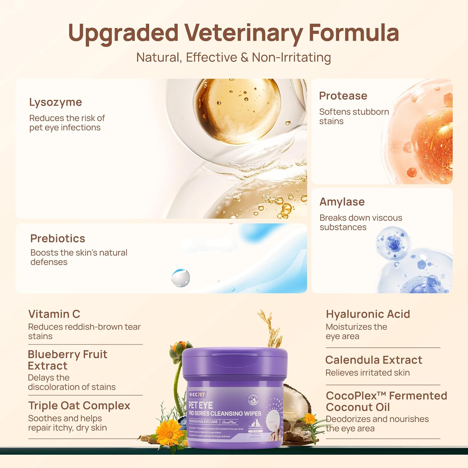 HICC PET Eyes Wipes for Dogs & Cats Upgraded Pro Version, Vet-Recommended Dog Eye Wipes Hypoallergenic, Dog Tear Stain Remover, Remove Debris, Mucus & Discharge - 100ct, Unscented