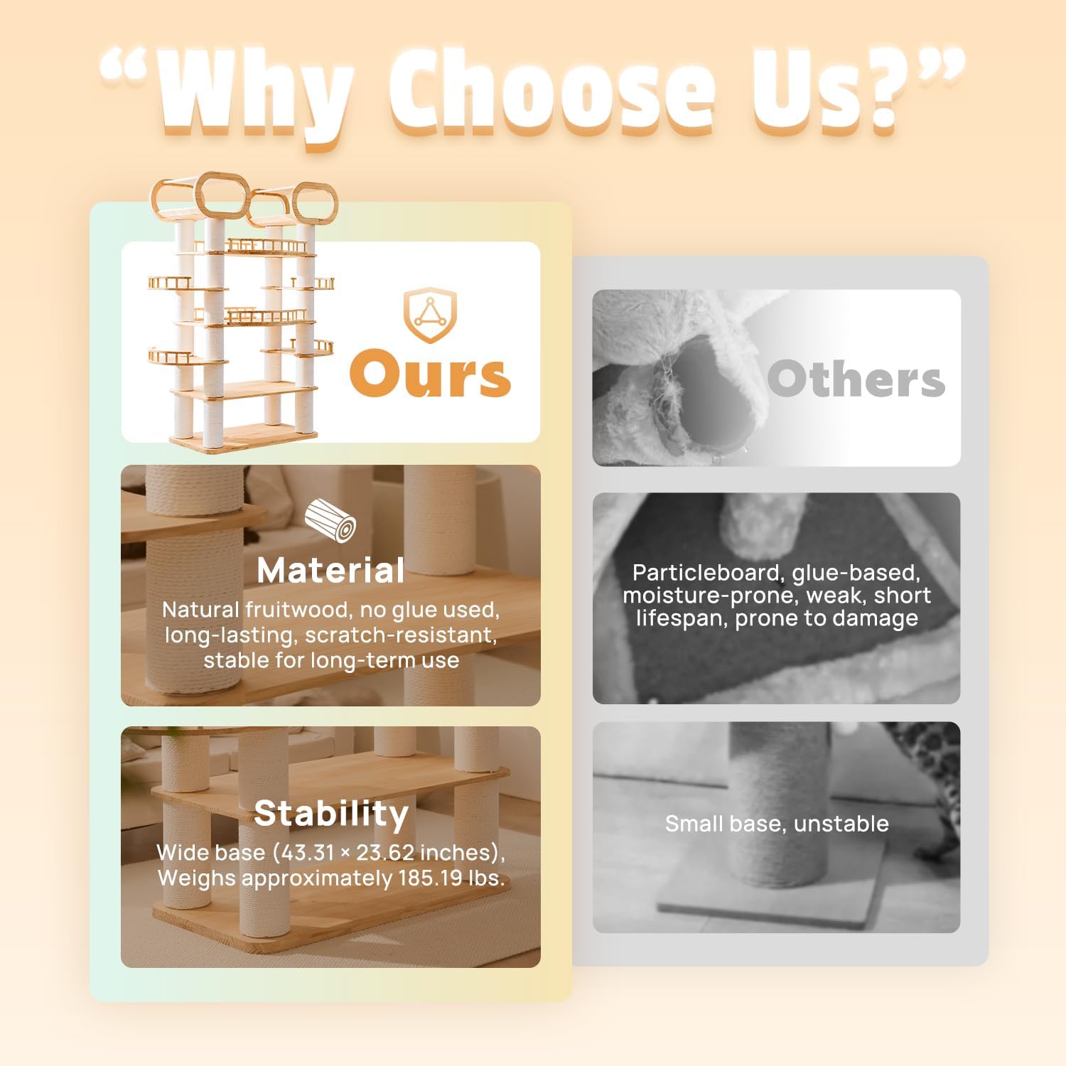 77'' Large Modern cat Tree, Multi-Level Tall Solid Cat Tower, Cat Furniture for Indoor Cats, Huge Cat Condo for Multi-Cat Families