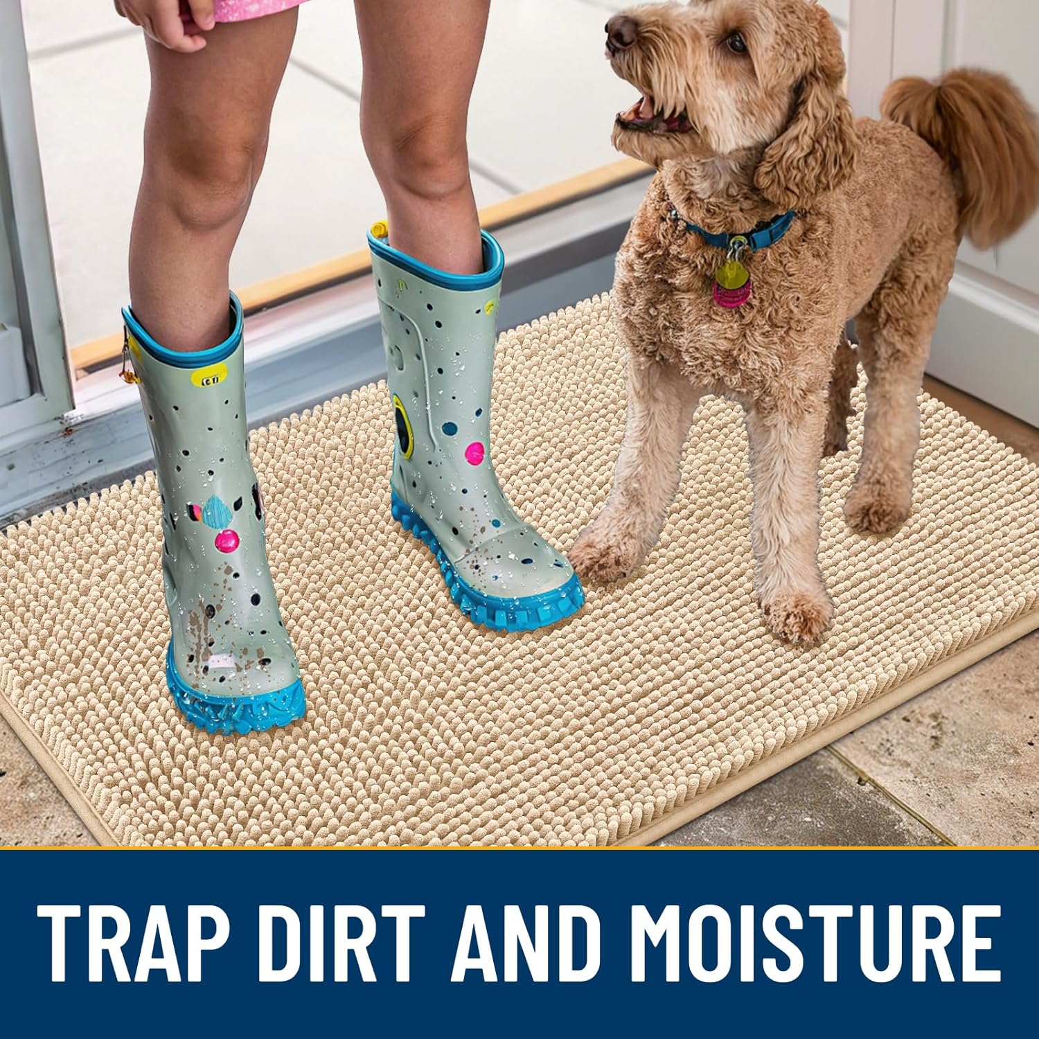 Smiry Dog Door Mat for Muddy Paws 54x32, Absorbs Moisture and Dirt Doormat, Non-Slip Washable Quick Dry Chenille Front Door Mat Indoor Entrance, Entryway Carpet for Inside Floor, Beige
