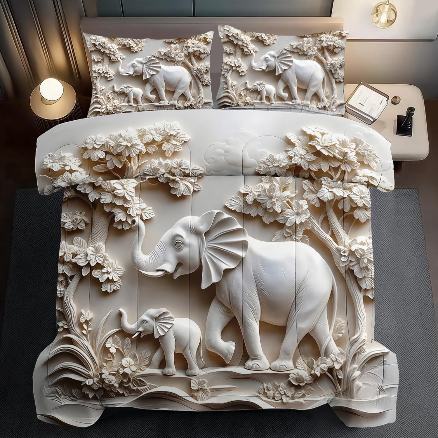 Elephant Comforter Set Full Adult, White Animal Bedding Set Full for Man, Cute Animal Comforter for Kids,Elephant Quilt Pattern White Bedroom Decor Womens, Relief Bedding