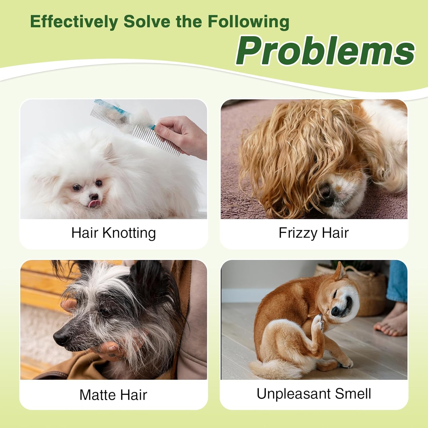 - Long-Lasting Fresh Scent – A dog moisturizer and conditioner that neutralizes odors, leaving pets smelling clean for days. Keeps fur soft and manageable, perfect for busy pet parents between washes or after grooming sessions