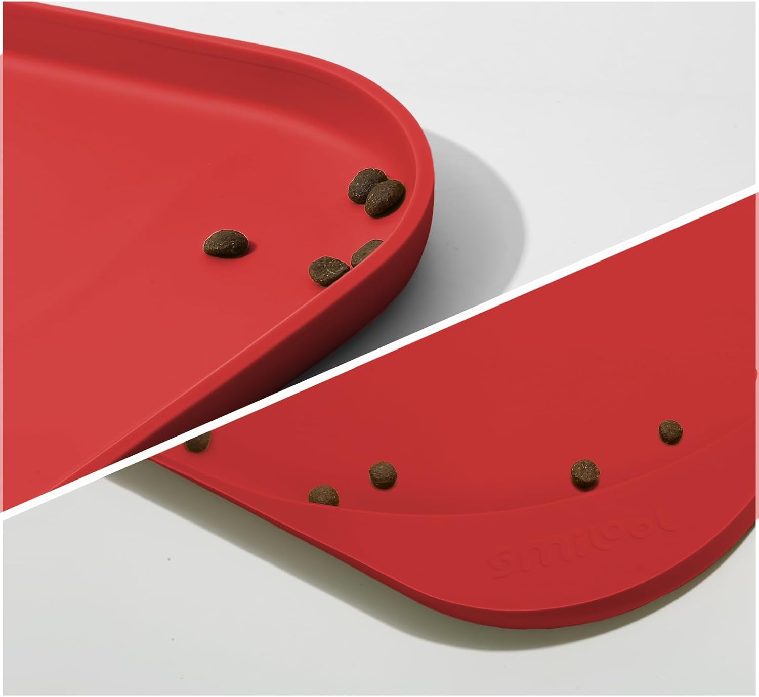 Silicone Pet Feeding Mat with Raised Edge & Residue Collection Pocket for Food and Water, Dog Bowl Mats, Cat Bowls Placemat with High Lip for Floor Waterproof, 24 x 16 x 0.8 Red