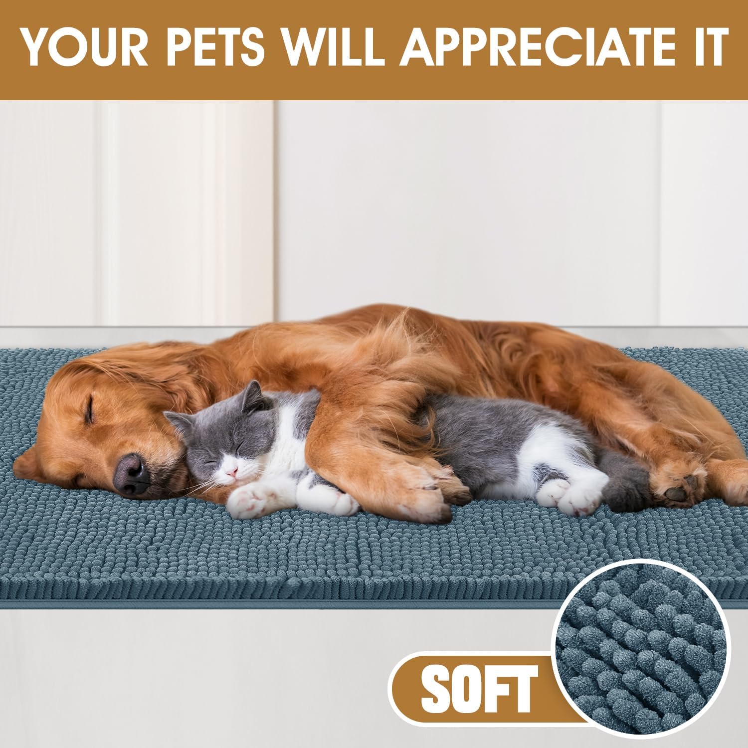 Dog Door Mats for Muddy Paws, Chenille Absorbent Door Mats, Non Slip Heavy Mud Mat for Dogs, Soft Indoor Door Mat for Entryway, Mud Paws, Inside Floor,30" X 20", Dusty Blue