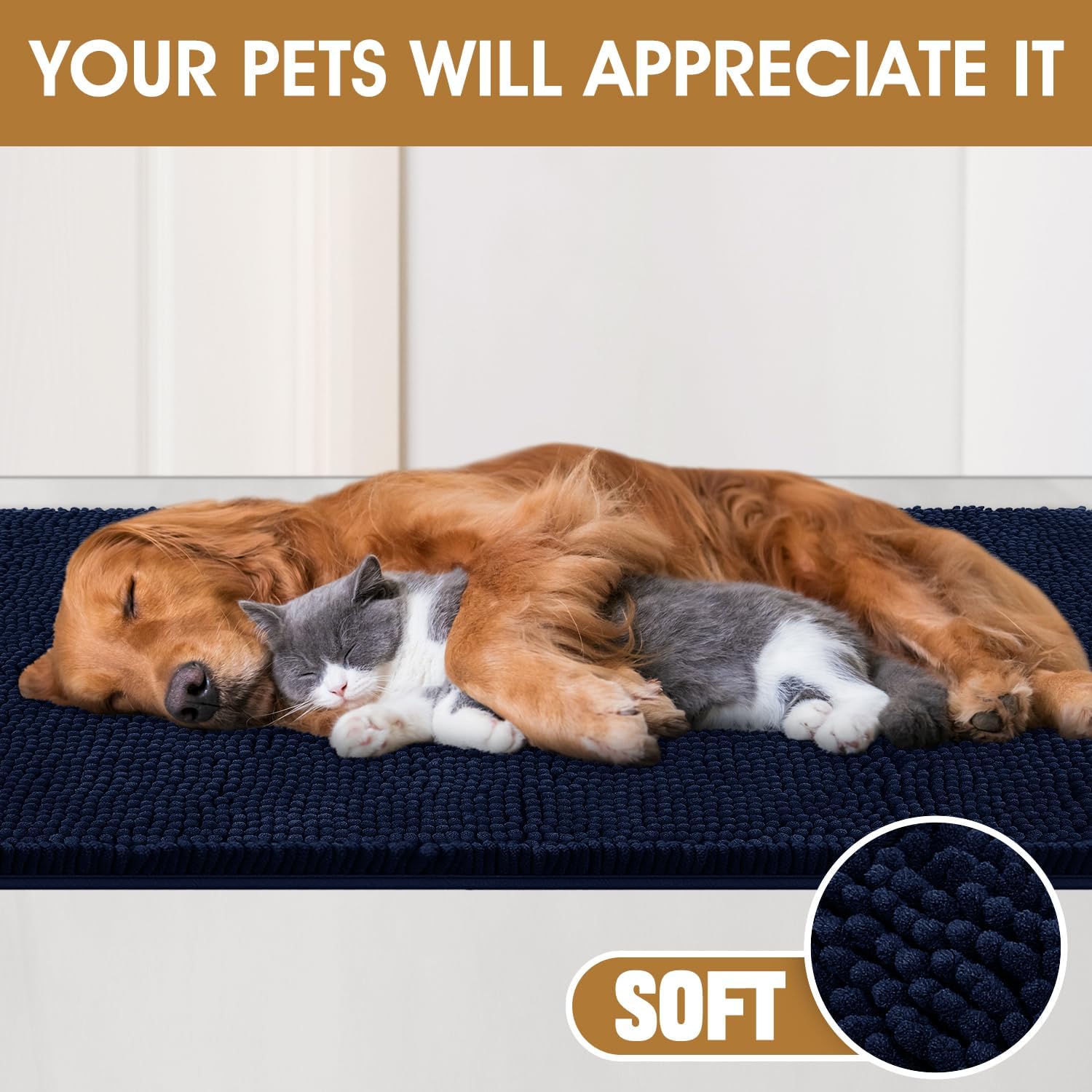 Dog Door Mats for Muddy Paws, Chenille Absorbent Dog Mats, Non Slip Heavy Mud Mat for Dogs, Soft Pet Mat for Entryway, Mud Paws, Inside Floor,48" x 38", Navy Blue