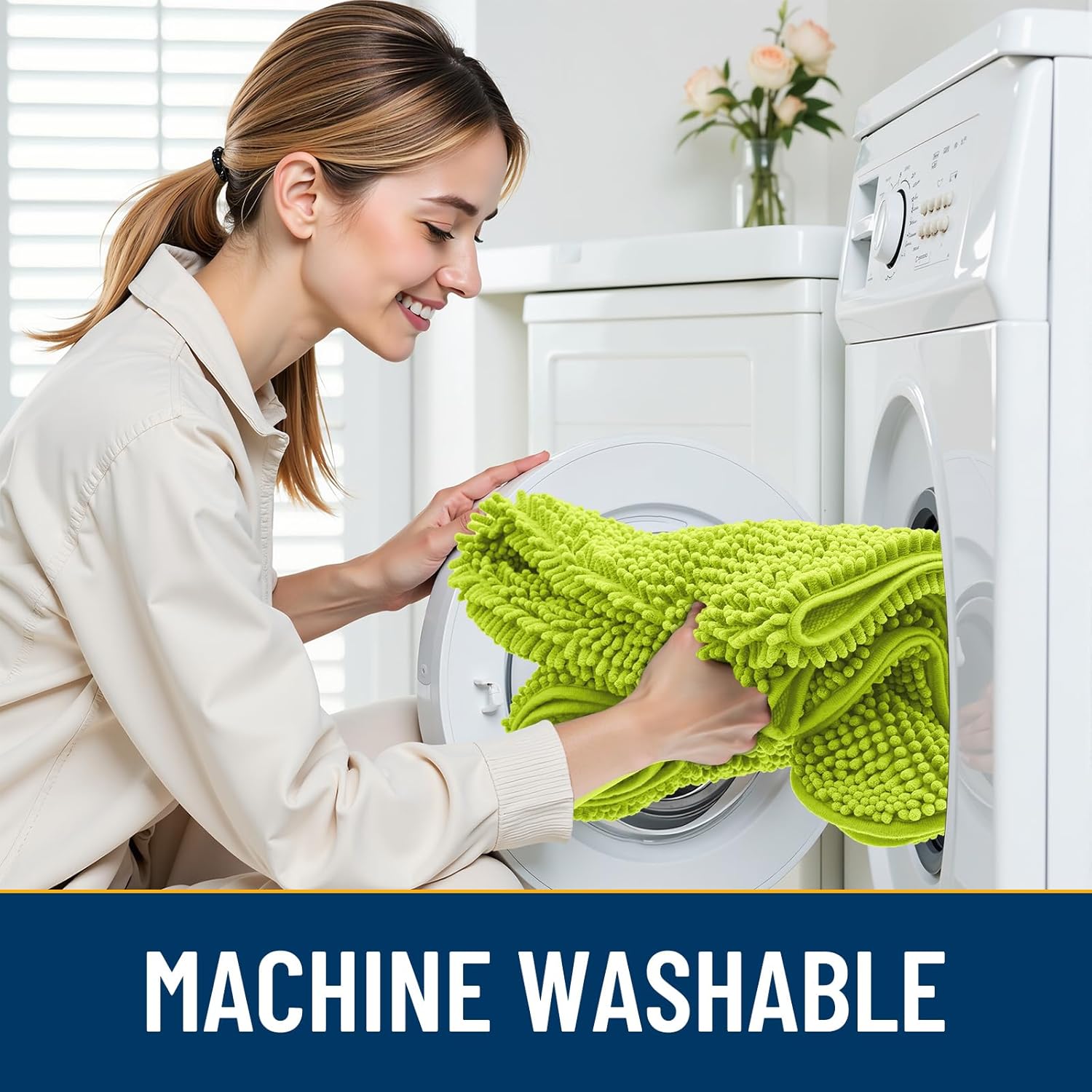 Smiry Dog Door Mat for Muddy Paws 30x20, Absorbs Moisture and Dirt Doormat, Non-Slip Washable Quick Dry Chenille Front Door Mat Indoor Entrance, Entryway Carpet for Inside Floor, Bright Green