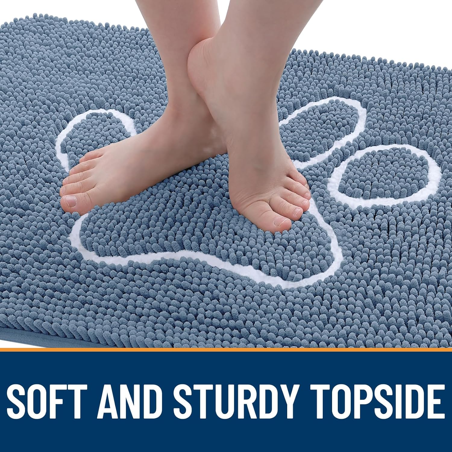 OLANLY Door Mat for Muddy Dog Paws 30x20, Absorbent Chenille Doormat with Paw Print Design, Non-Slip Washable Doormat for Indoor Entryway, Quick-Dry Pet Bed Mats for Dirty Dogs, Airy Blue and White