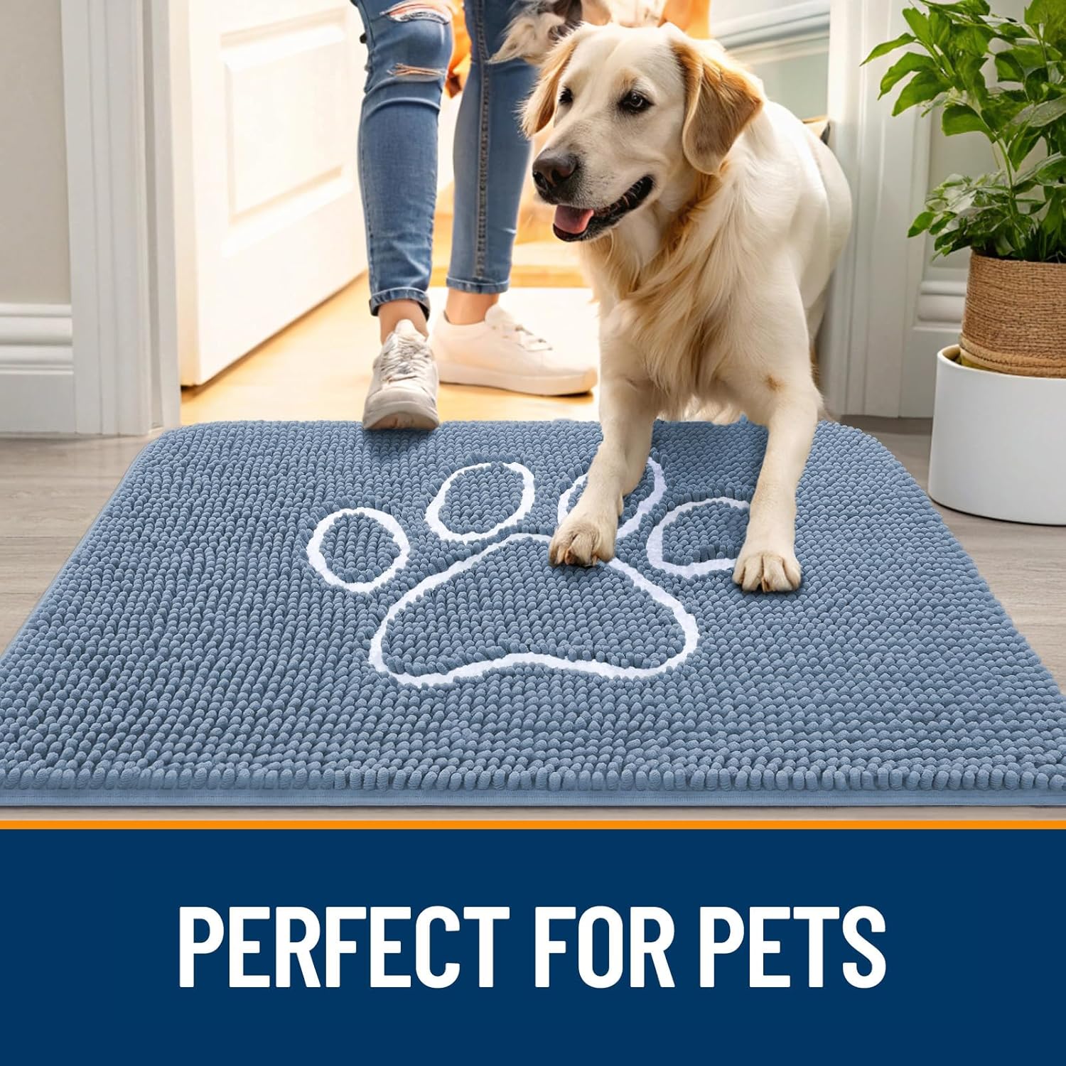 - [ABSORBS MOISTURE AND DIRT] OLANLY indoor dog mat for muddy paws is crafted to efficiently remove dirt and swiftly absorb moisture. With our doormat, your shoes will be instantly clear of any water, dust, grit, muck, sand, sleet, grass, slush, rain, or snow upon entering the house. It's an excellent choice for use as an entryway door mat, a welcoming door mat, or a dirt-trapping mat.