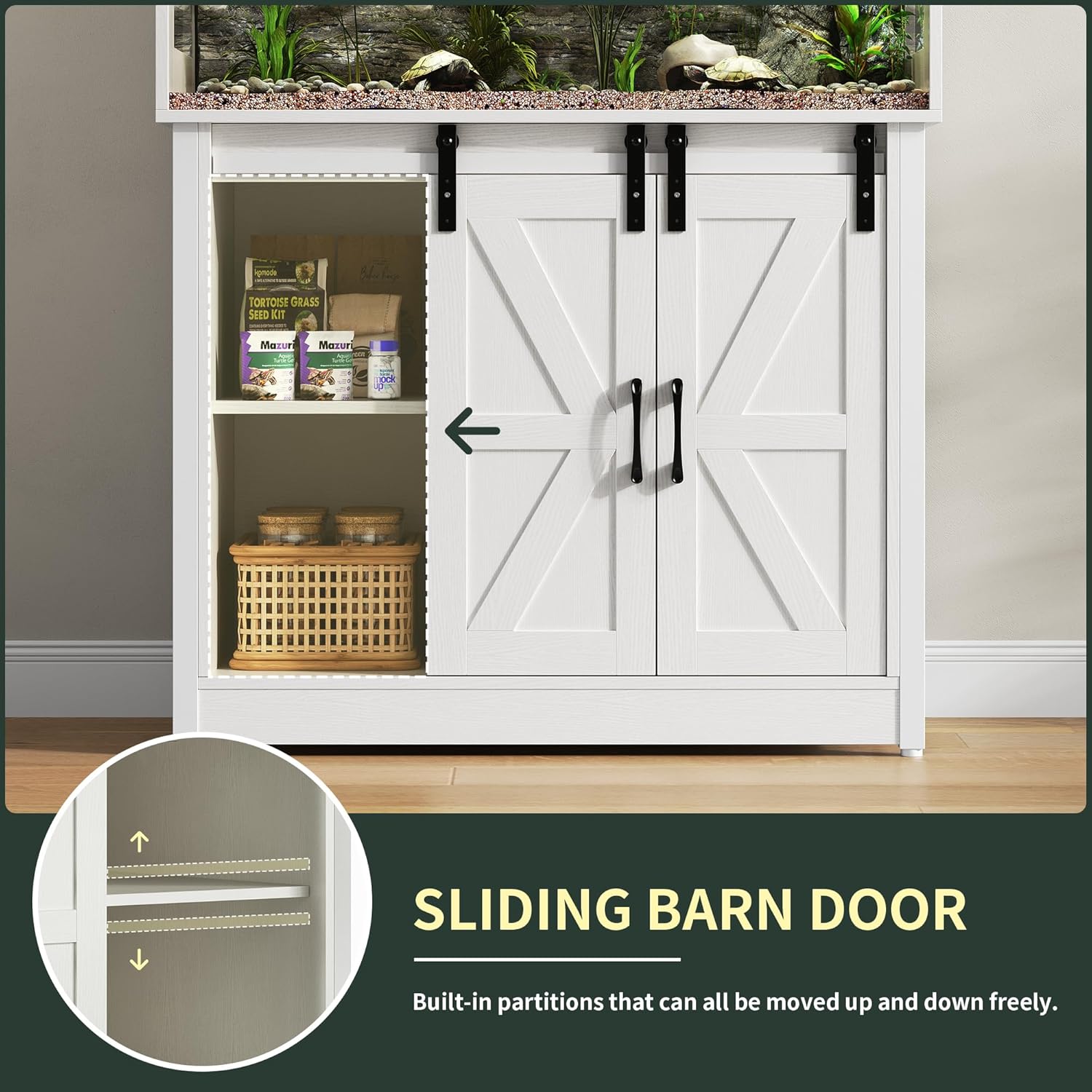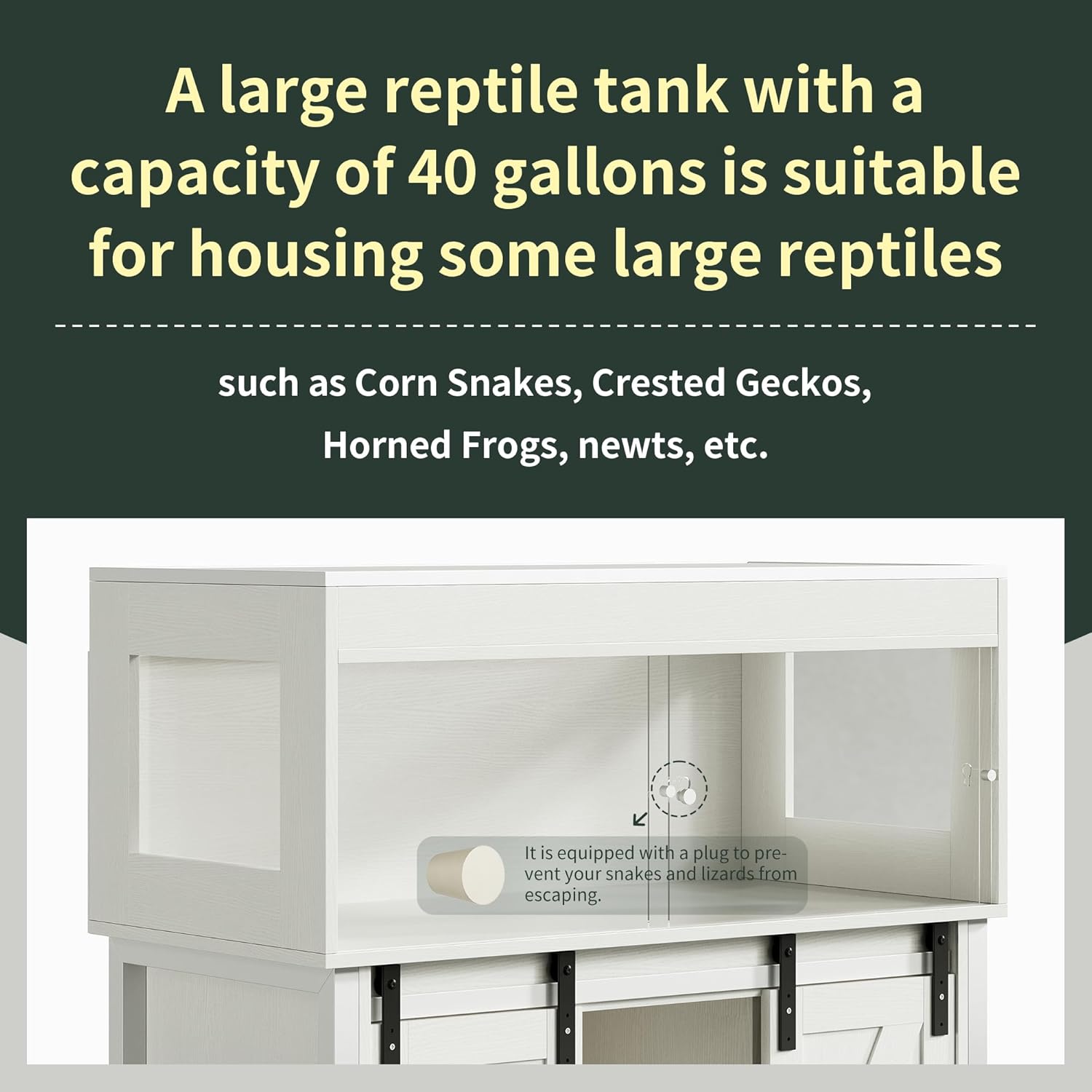 40 Gallon Reptile Terrarium with Stand, Reptile Tank with Barn Door and Storage, Vivarium with Acrylic Doors, Ventilated Mesh Top & Power Outlet, for Geckos, Lizards, Snakes White PX06RTW
