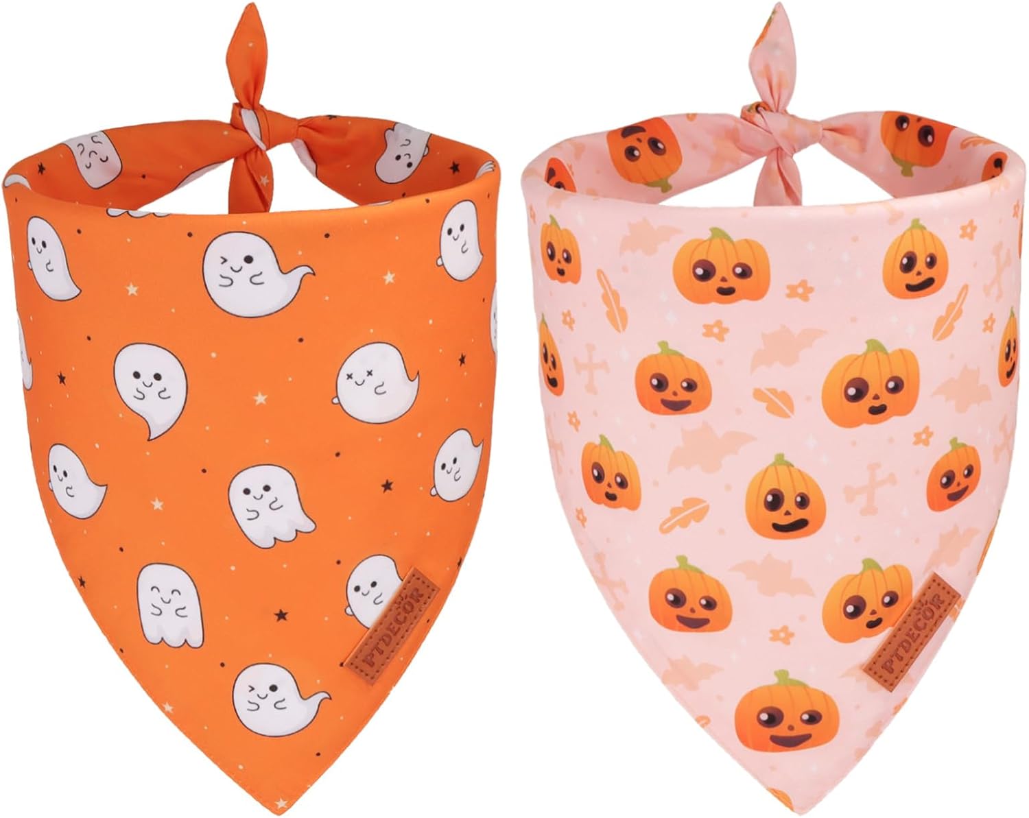 PTDECOR Halloween Dog Bandana, Cute Ghost Pumpkin Design Reversible Holiday Pet Scarf, Adjustable Orange Yellow Halloween Bandanas for Small Dogs Puppies Cats(Small)
