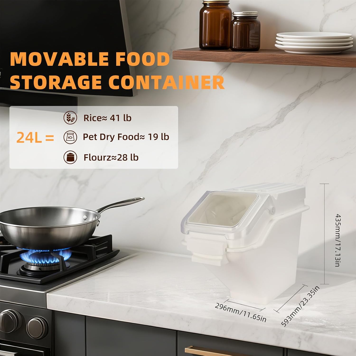 - 4. 【Tiered Capacity & Flexible Use】Available in 3 optimized sizes:10L (holds ~4.5kg / 10lb flour)24L (holds ~11kg / 24lb flour)47L (fits standard 25kg/55lb flour sacks*).Perfect for household pantries to commercial kitchens – scales seamlessly with your storage needs.