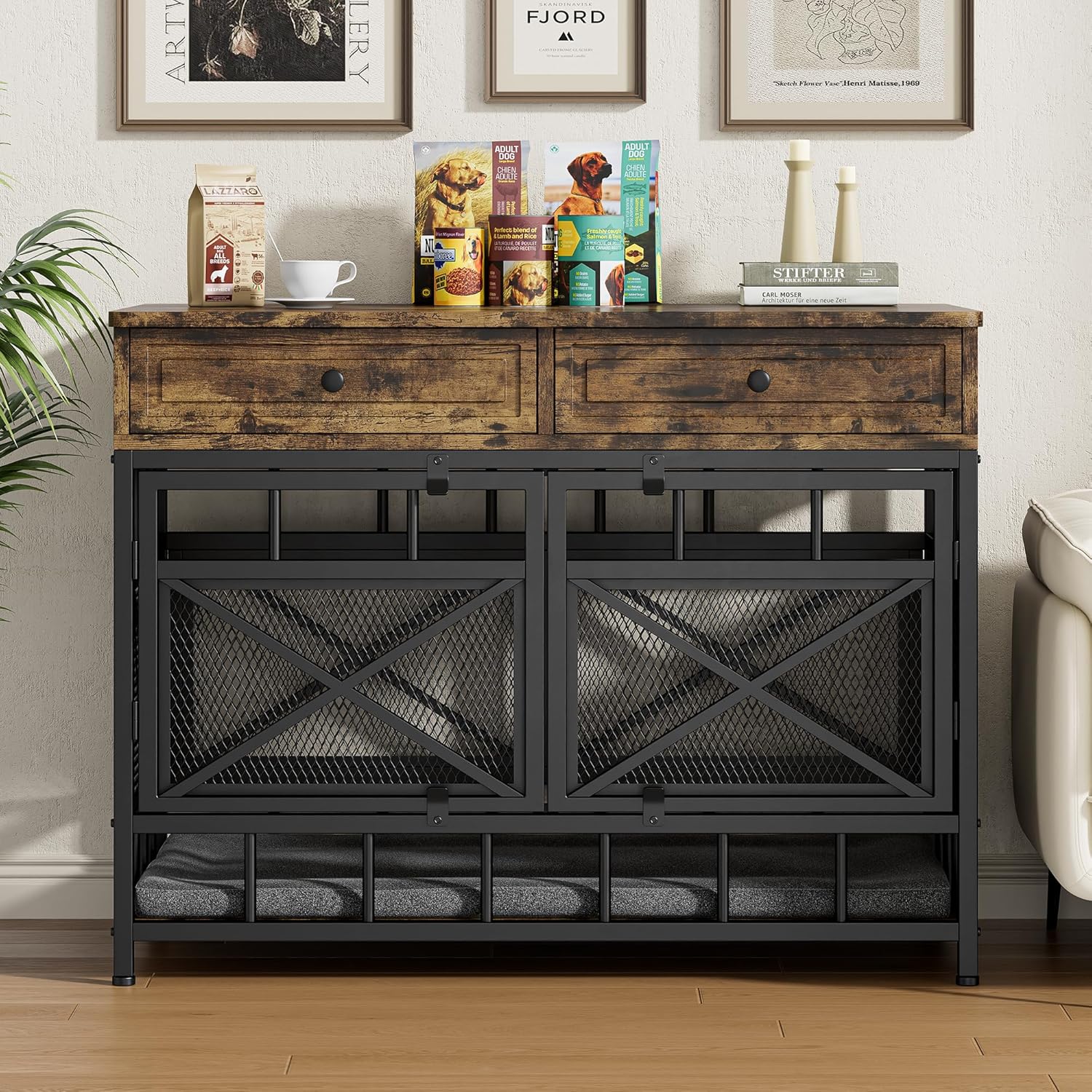 - Large Storage Space: Compared with ordinary dog cage furniture, we specially designed double-layer drawers + wide desktops to easily store pet supplies, toys and other sundries, making the living space of your dog more tidy and orderly, and you can also worry less