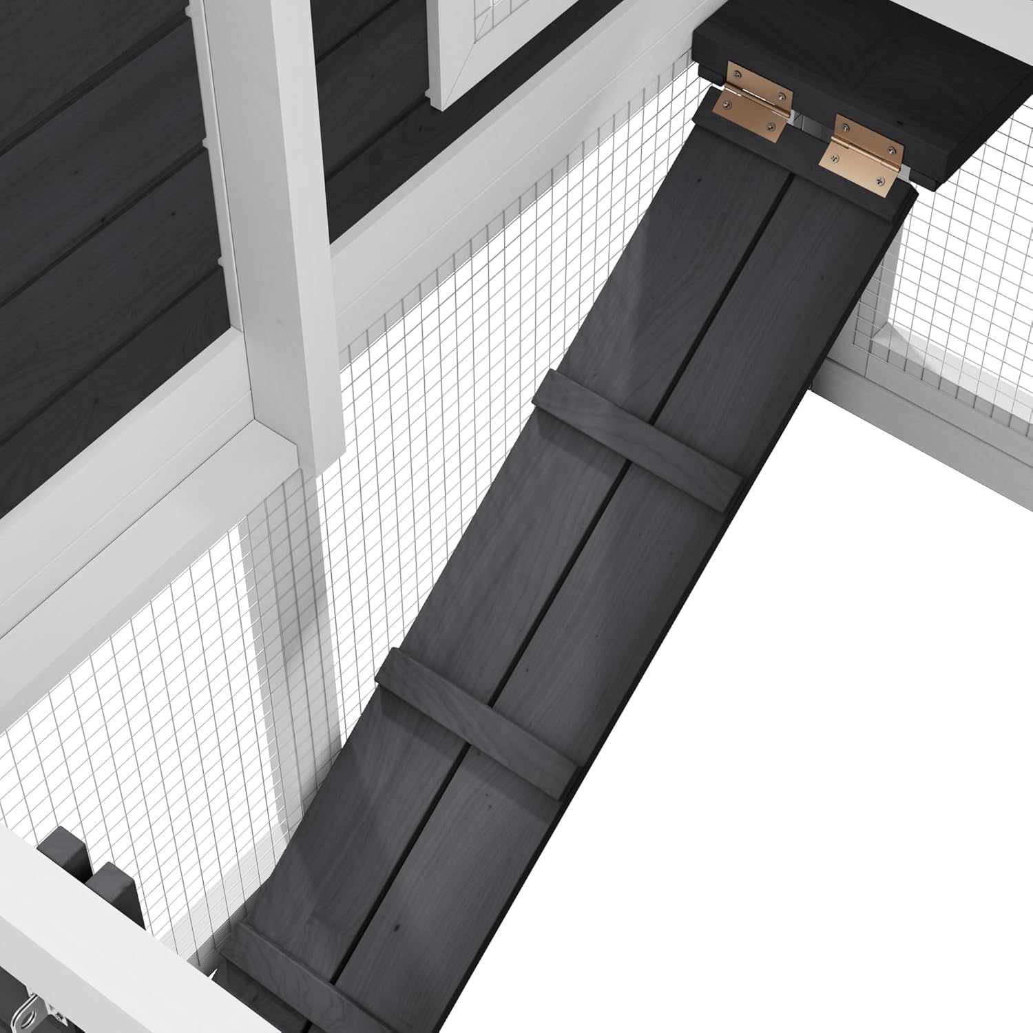 Bunny Cage Premium Rabbit Hutch with Leak-Proof Roof, 2-Story Bunny House for Guinea Pigs & Hamster,Wooden Chicken House with Deep Pull-Out Tray, Waterproof Chicken Coop for Outside (Grey)