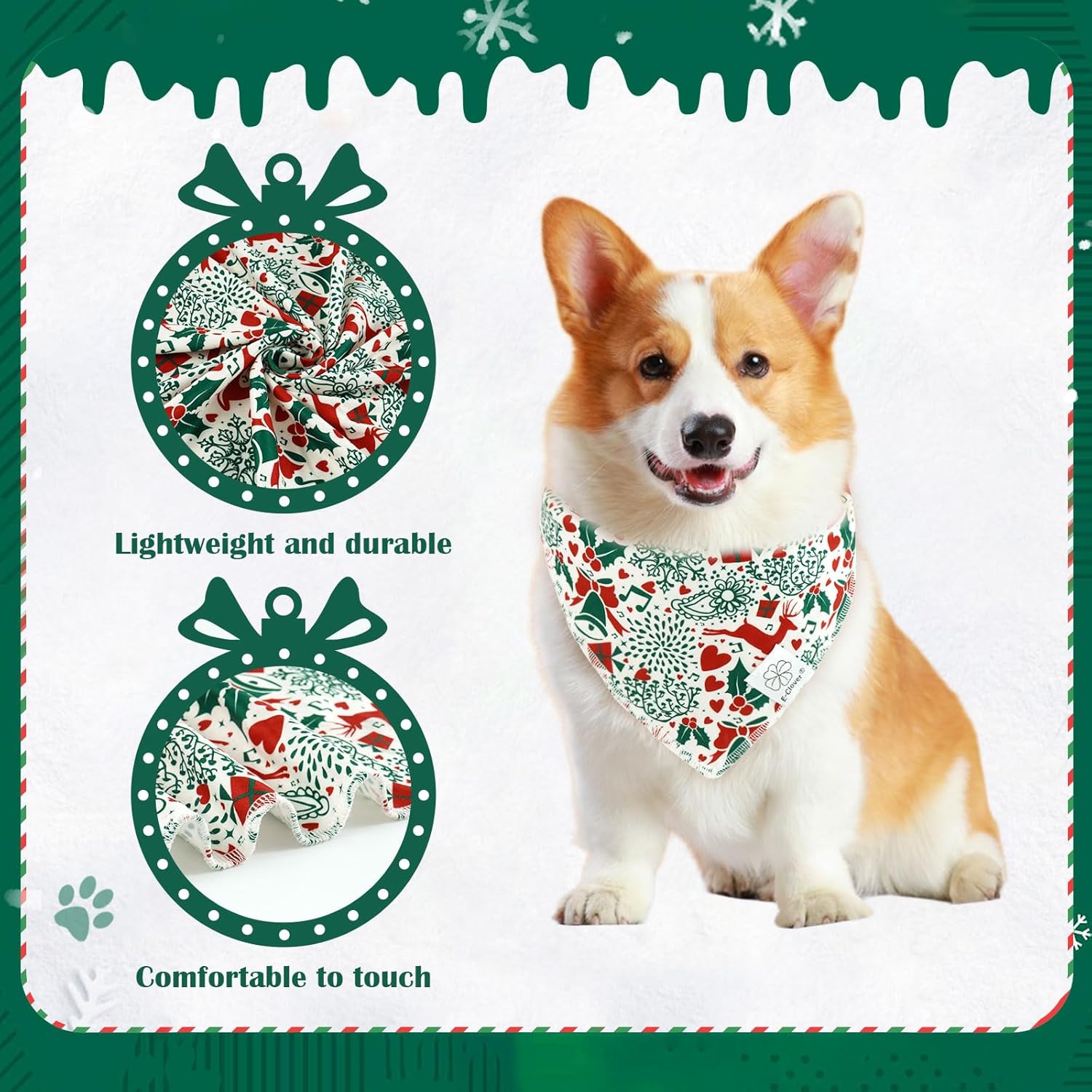 - Matching Bandana and Scrunchie Set: It's full of love when your pets is wearing the christmas elements bandanas and you are wearing the bow scrunchies. When traveling, sleeping, taking photos or daily warking, adorable winter dog bandana and scrunchie is a pretty accessories. The the hair tie can be worn as a wrist accessory and hold your hair. Beautiful dog drool bibs and scrunchie with christmas tree pattern, it’s nice photo props.
