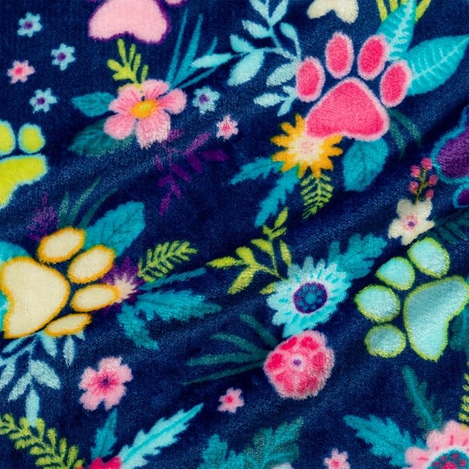 Pet Dog Cat Blanket Ultra Soft Cozy Fleece Paw Print Design Machine Washable Durable for Crates Beds Sofas Travel (Garden of Paws, Medium)