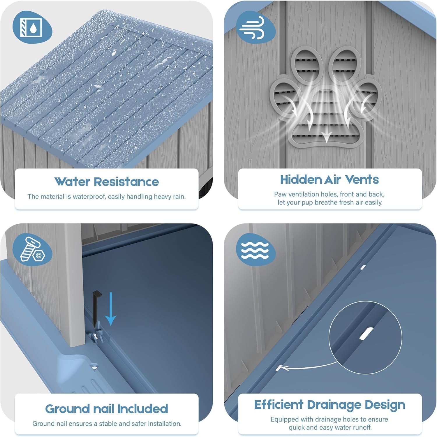 Large Outdoor Plastic Dog House - Indoor Outdoor Use for Medium & Large Dogs, Durable Waterproof Doghouse with Air Vents, Elevated Floor, Easy to Clean & Assemble(Blue2, 36.2''LĂ38''WĂ38''H)