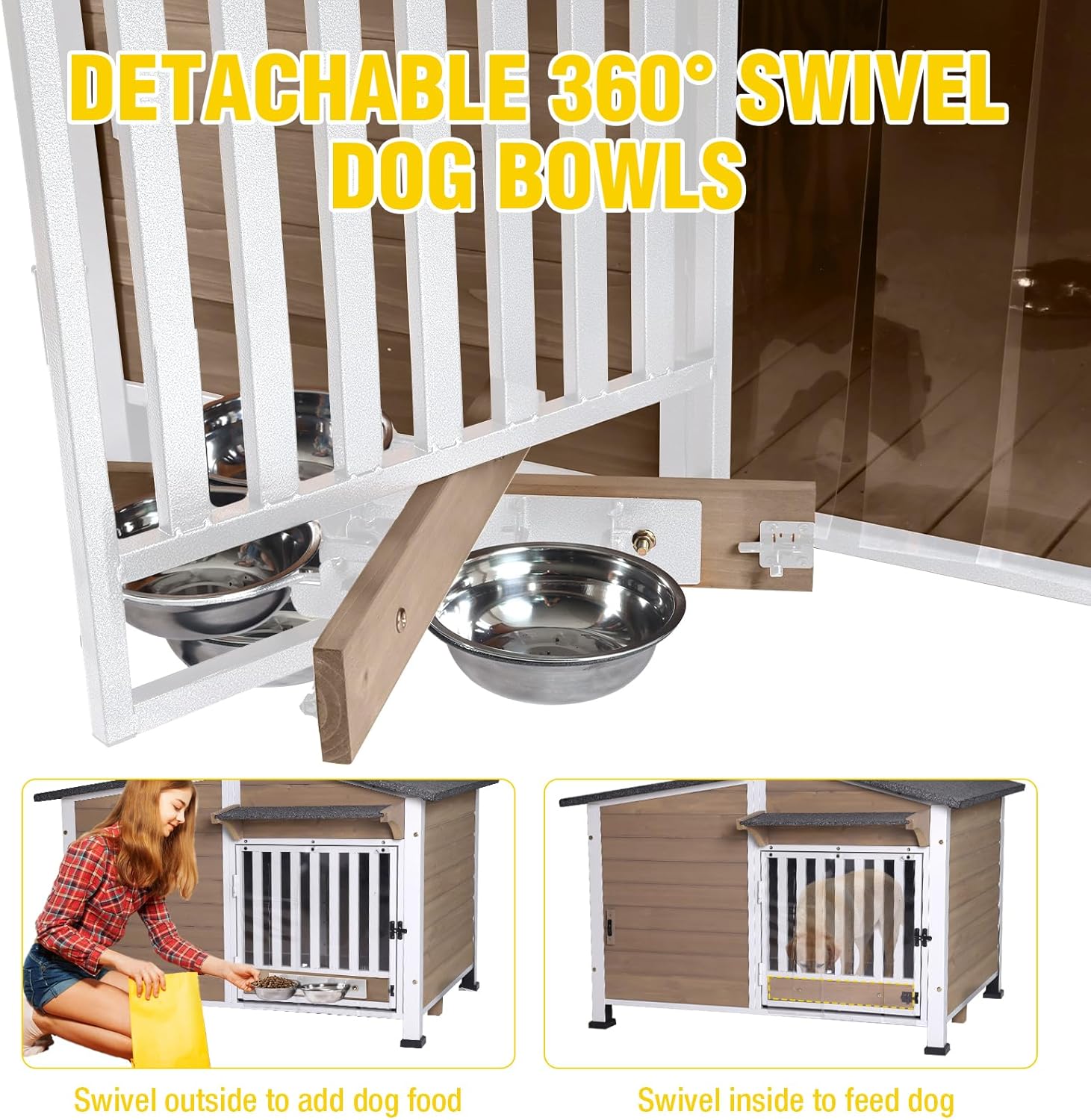 - 【Built-in Anti-Spill Bowls】Includes two removable stainless steel bowls that are tip-resistant, making feeding convenient and keeping the kennel area clean and tidy