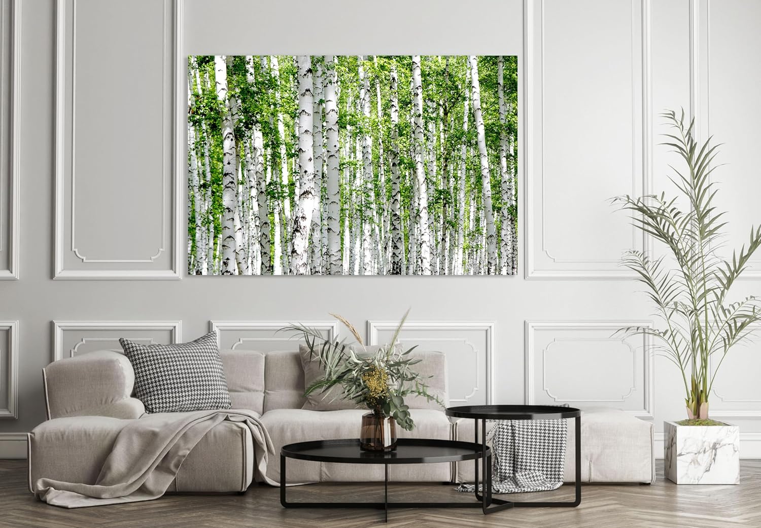 Nature Wall Art Prints - Ocean Forest Mountain Lake Canvas Landscapes - Small to Extra Large Living Room Bedroom Kitchen Bathroom Décor (Green Brich Trees, 31L" x 47W")