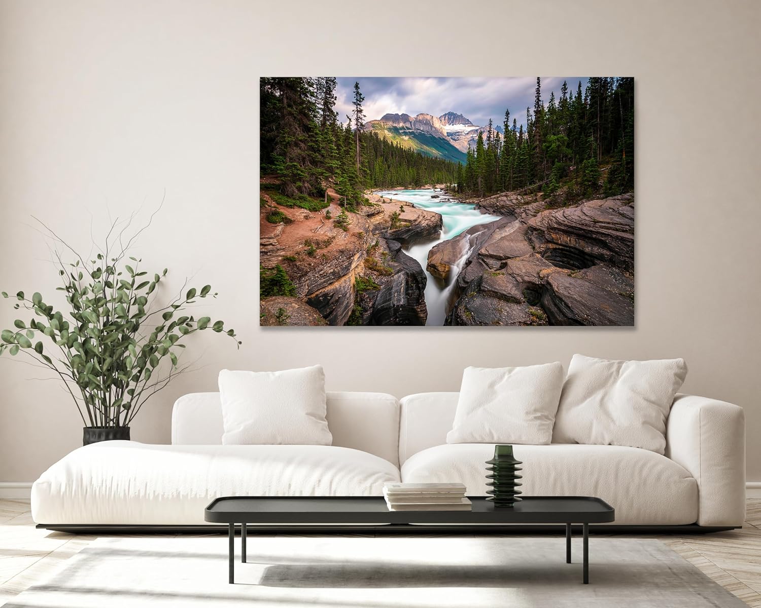 Nature Wall Art Prints - Ocean Forest Mountain Lake Canvas Landscapes - Small to Extra Large Living Room Bedroom Kitchen Bathroom Décor (Mountain River Waterfall, 24L" x 36W")