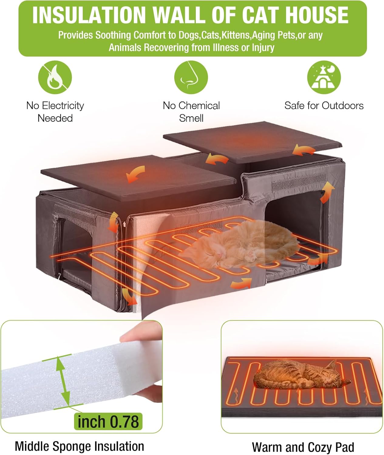 - Heated Pad & Removable Interior Includes a soft, warm inner pad and an optional heating unit (heating pad sold separately) for extra warmth in cold weather. The removable floor and wide roof opening make cleaning simple.