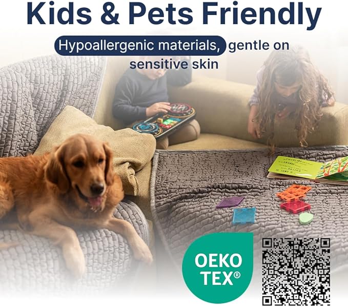 - KID & PET FRIENDLY: Made with hypoallergenic materials, our breathable waterproof blanket is safe even for sensitive skin. Soft and silent, it offers a comfortable, soothing base for rest, play, and sleep.