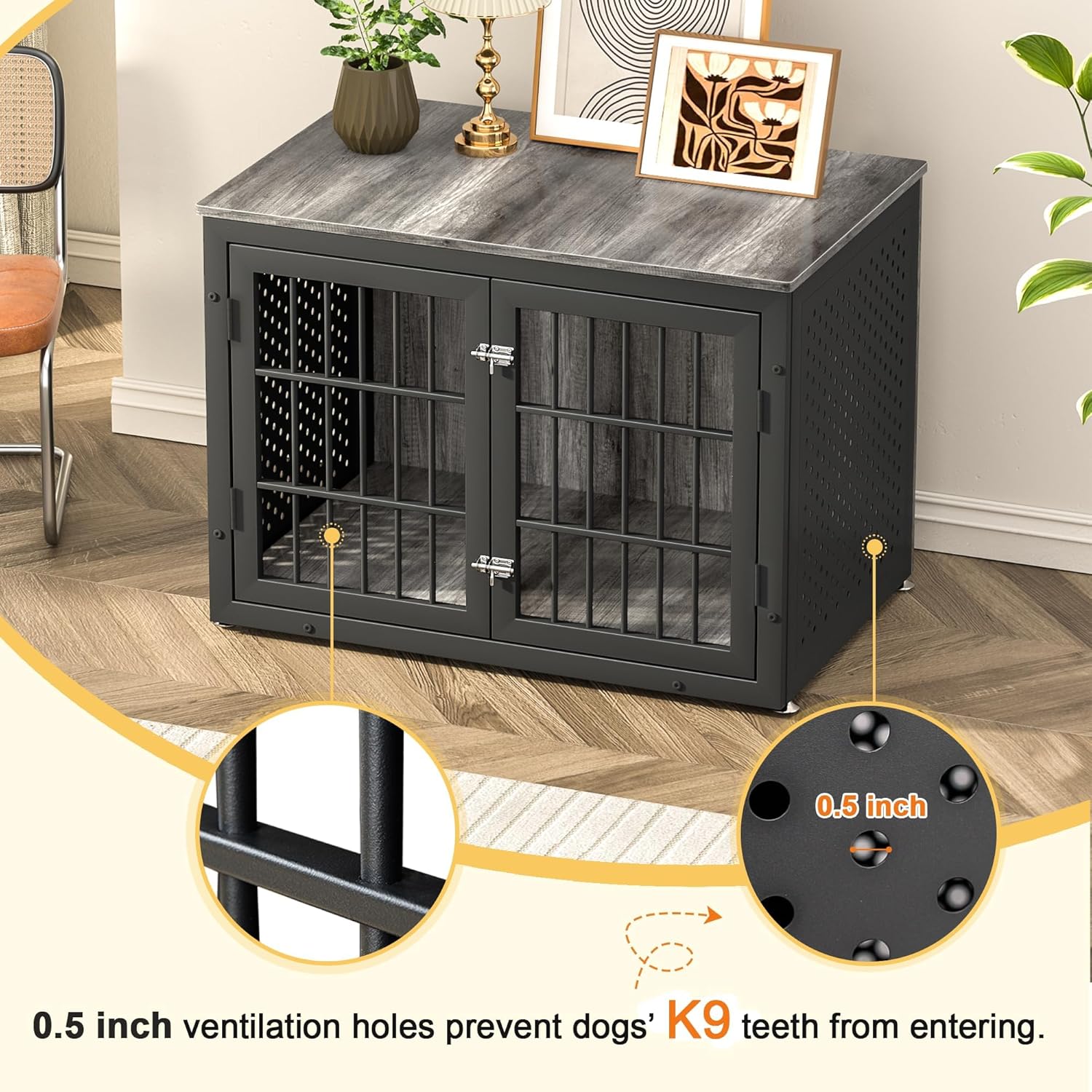 38" Heavy Duty Dog Crate Furniture for Large and Medium Dogs,Wooden Metal Kennel for High Anxiety Dogs, Chew Proof Cage Indoor, Decorative Kennel End Table